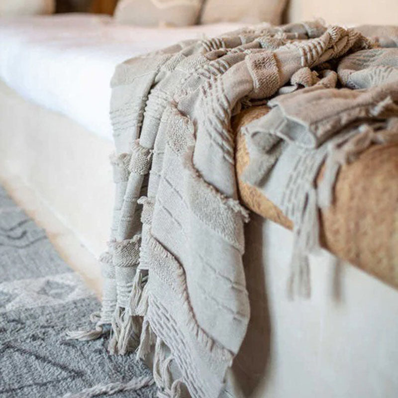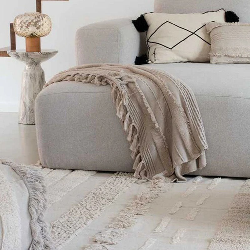 A soft, knitted cotton throw with a bohemian vibe to match our best-selling Air rugs. Like these, it plays with textures to highlight its handcrafted finish. Ideal both as a lightweight blanket for the nursery or bed footer and as a couch throw.