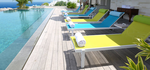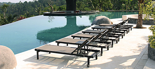 Intelligent designs incorporate an impressive strength to weight ratio with universal versatililty. Easily customized tables are available in a famously extensive choice of tops (now also including wide, brushed recycled teak planks), guaranteeing both the right look and fit. Single and adjustable double ALLUX loungers can be found poolside in the best resorts worldwide, and dining and bar chairs are a classic choice for residential and commercial projects alike. Designed by Vincent Cantaert & Barbara Widiningtias.