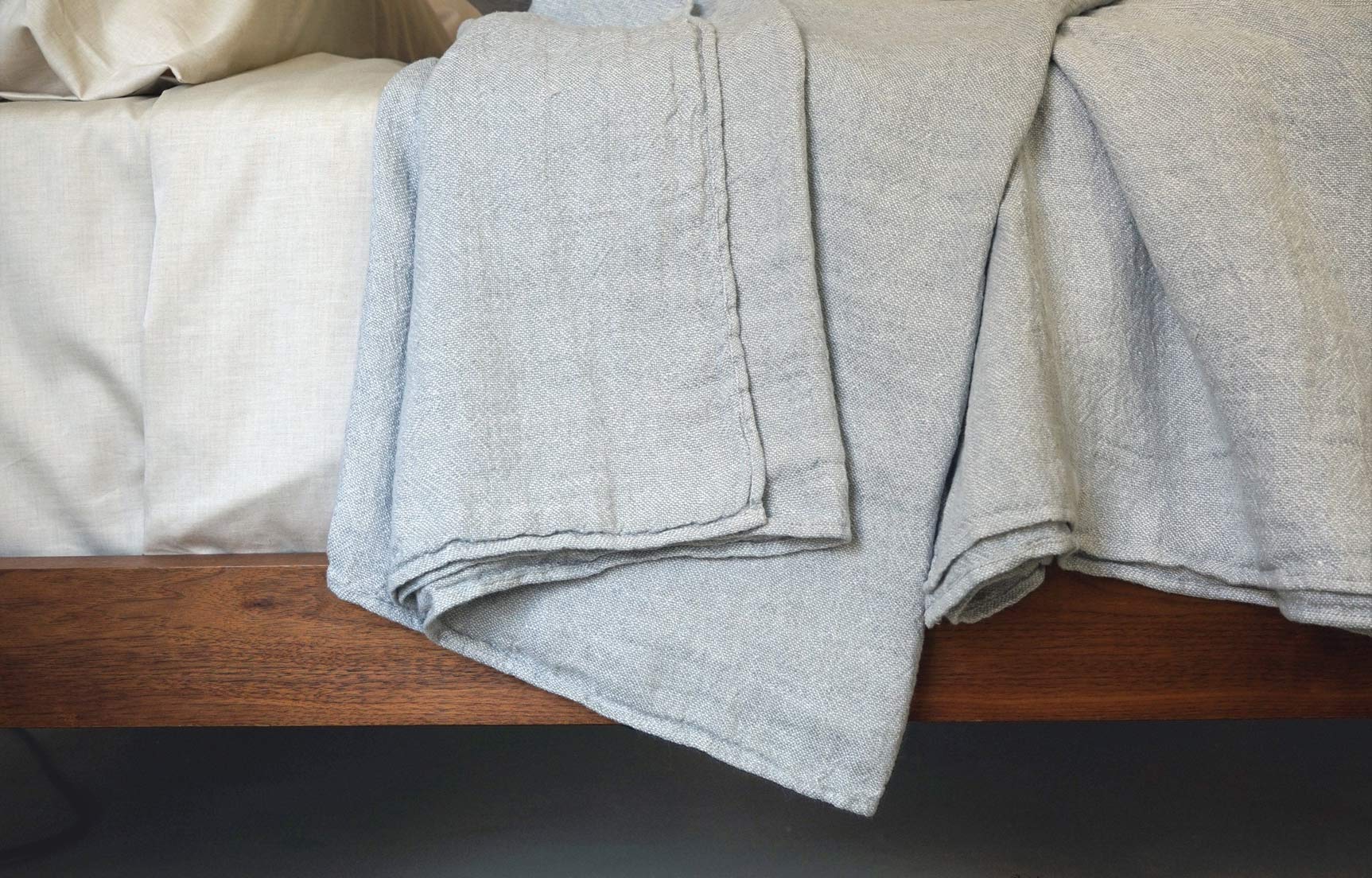 The next chapter in our quest to produce the perfect linen blanket. Textured pure 100% linen, spun from fibers of the flax plant, is woven with two colors into a beautiful basketweave, the pattern becoming more defined with each wash.
