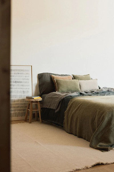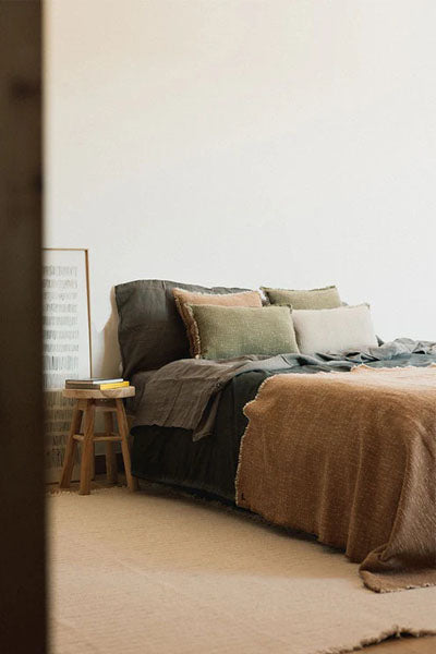 Meticulously handcrafted by our skilled artisans in India using traditional handloom techniques. This atemporal design highlights the natural beauty and texture of cotton, signed by several crosses handcrafting the letter L.