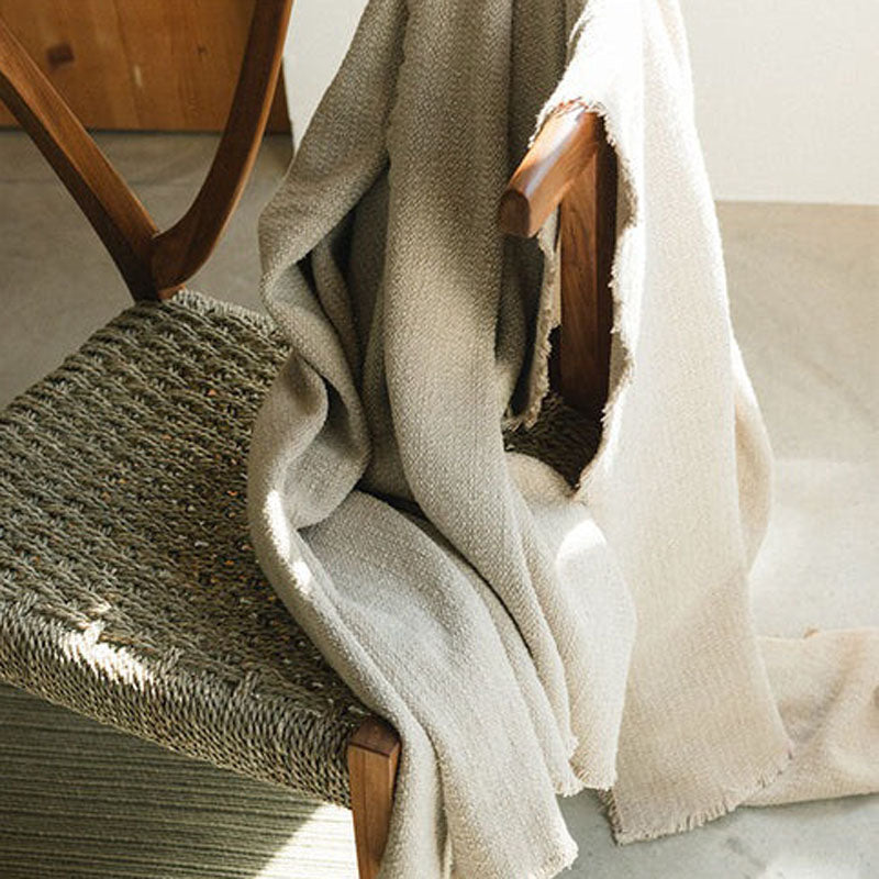 Timeless handloom blanket made with natural and beige cotton threads.