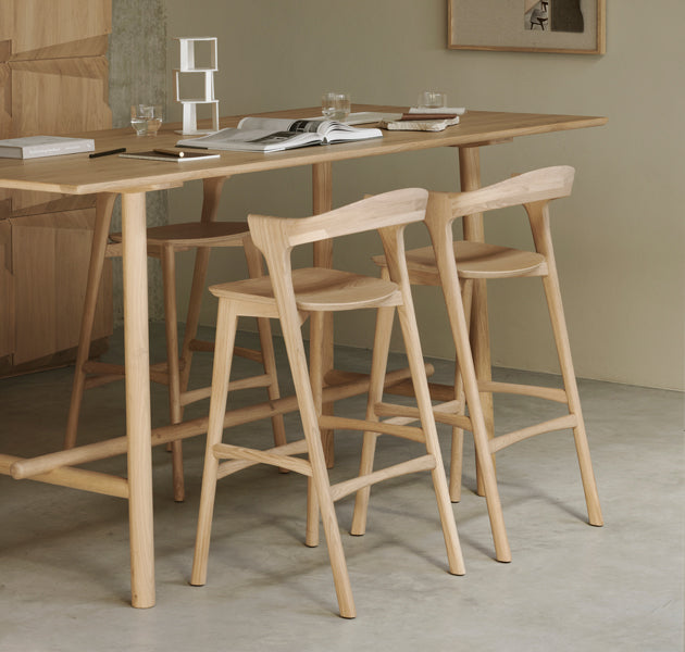 Reminiscent of a goat's curved horns, the Bok collection combines sculptural elegance and contemporary crafting into a graceful and airy form. Over the years, the Bok dining chair has become one of Ethnicraft's most recognisable designs β and the Bok stool, a clever adaptation that echoes its distinctive silhouette.