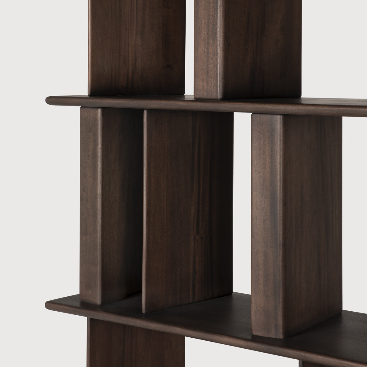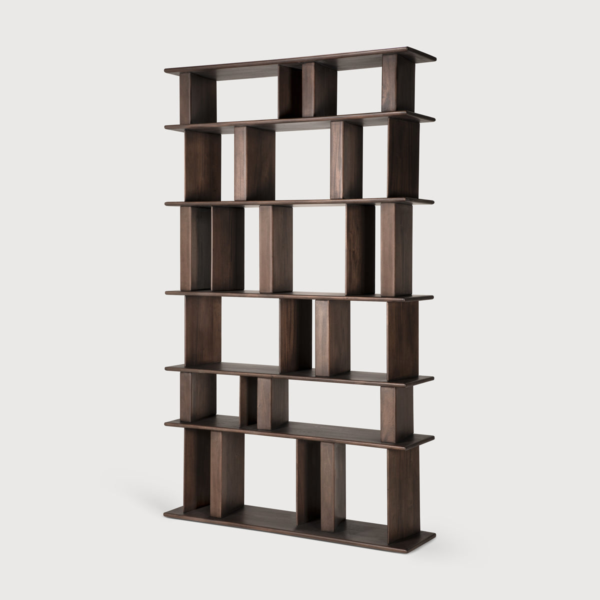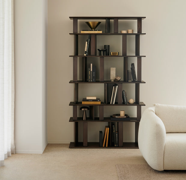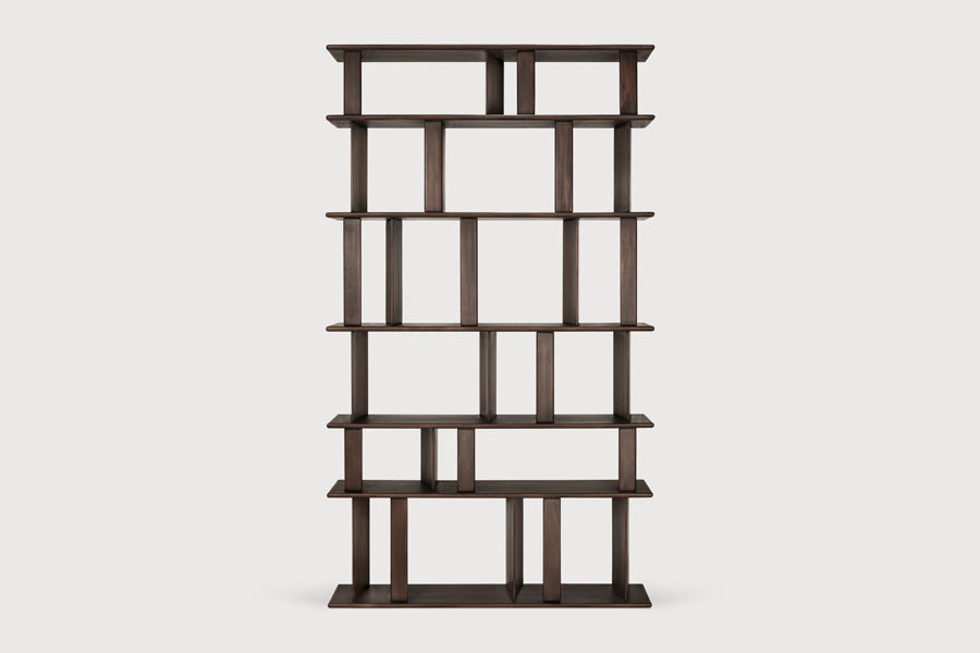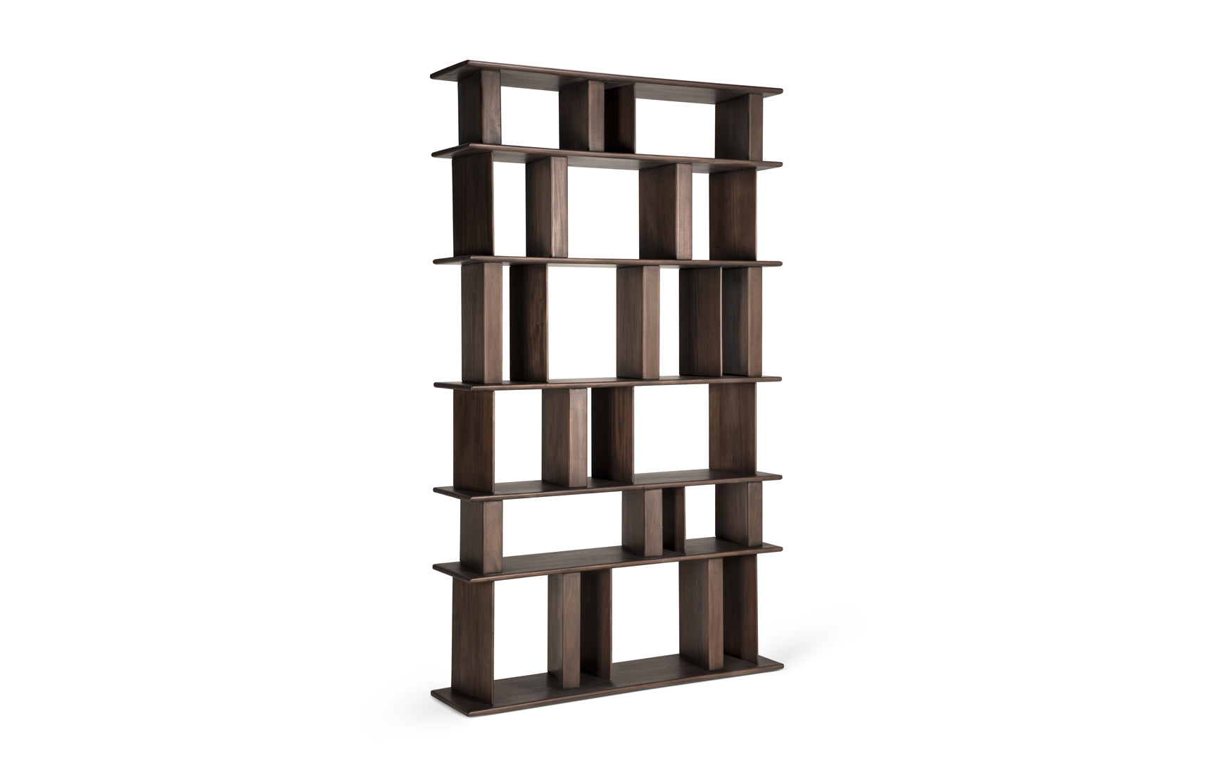 A rhythmic play of form and function, the Block rack brings sculptural impact to everyday storage. Crafted from solid mahogany, its angular dividers offer dynamic views from every angleβwhether placed solo or in sequence. Defined by its clean lines and open spacing, the Block rack balances visual interest with everyday practicality.
