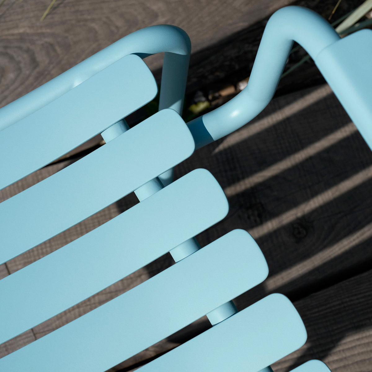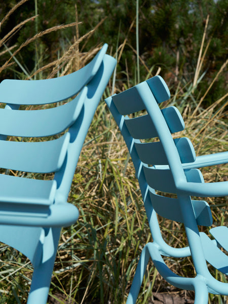 ALUA is a versatile aluminum lounge chair, designed for numerous different environments, whether it's a private balcony, a public park, or a restaurant. The curved aluminum slats are shaped to provide you with a comfortable seating experience and to give the chair a soft and inviting appearance. Designed and produced with durability in mind, ALUA is built to endure many years outdoors – and comes with a 5-year warranty.