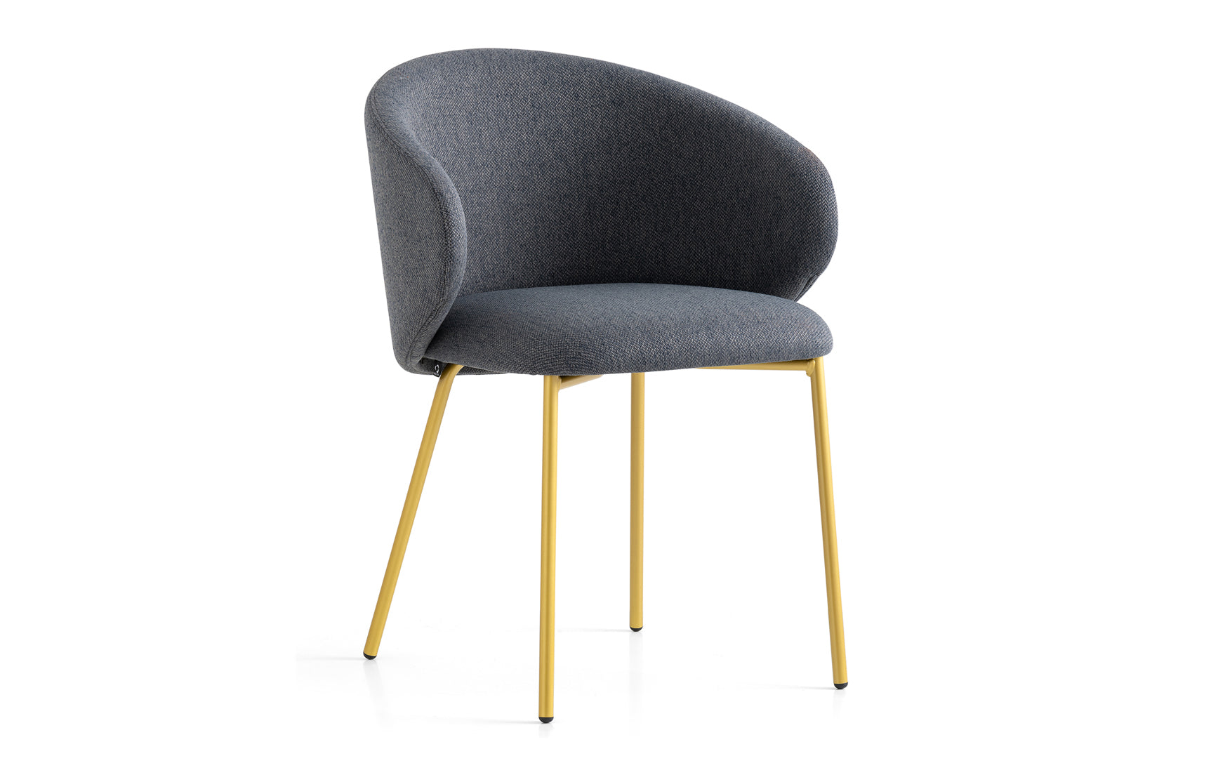 TUKA armchair in tubular metal. Padded seat shell with fixed upholstery, large wraparound backrest and rounded chair seat.