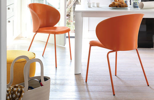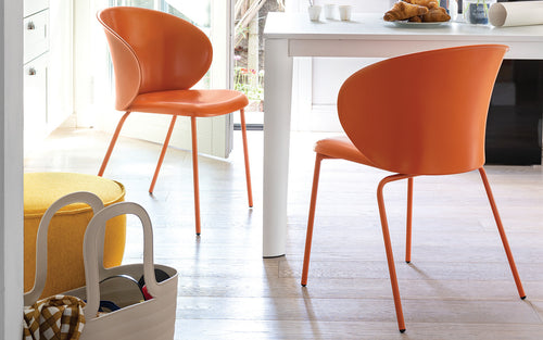 Elevate your dining room with Connubia. Each piece infuses a burst of modernity and playful color, transforming every meal into a vibrant experience. For your home office, they add a dash of joy, making workdays more colorful and enjoyable. In the kitchen, Connubia bar stools create a cozy, welcoming atmosphere, while their modern dining chairs bring a lively zest to every meal.