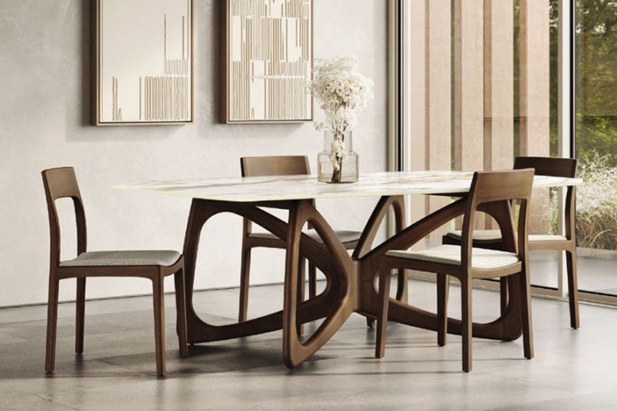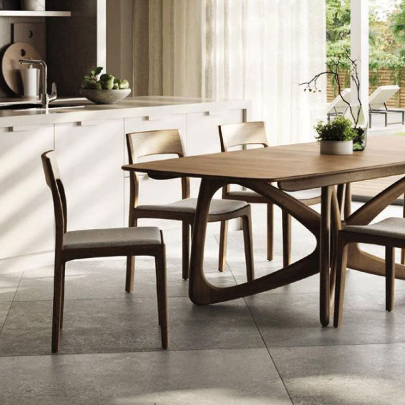 The Lisse Chair is crafted in solid American black walnut hardwood and solid oak hardwood and is Made to Order in a range of finishes. Walnut dining items are finished with a low sheen (10 sheen) top coat. The finish is GREENGUARD Certified for low chemical emissions. Lisse Upholstered Chairs are available in a range of microsuede, fabric, Ultrasuede®, Ultraleather®, Sunbrella® or leather colors as well as COM (customer’s own material).