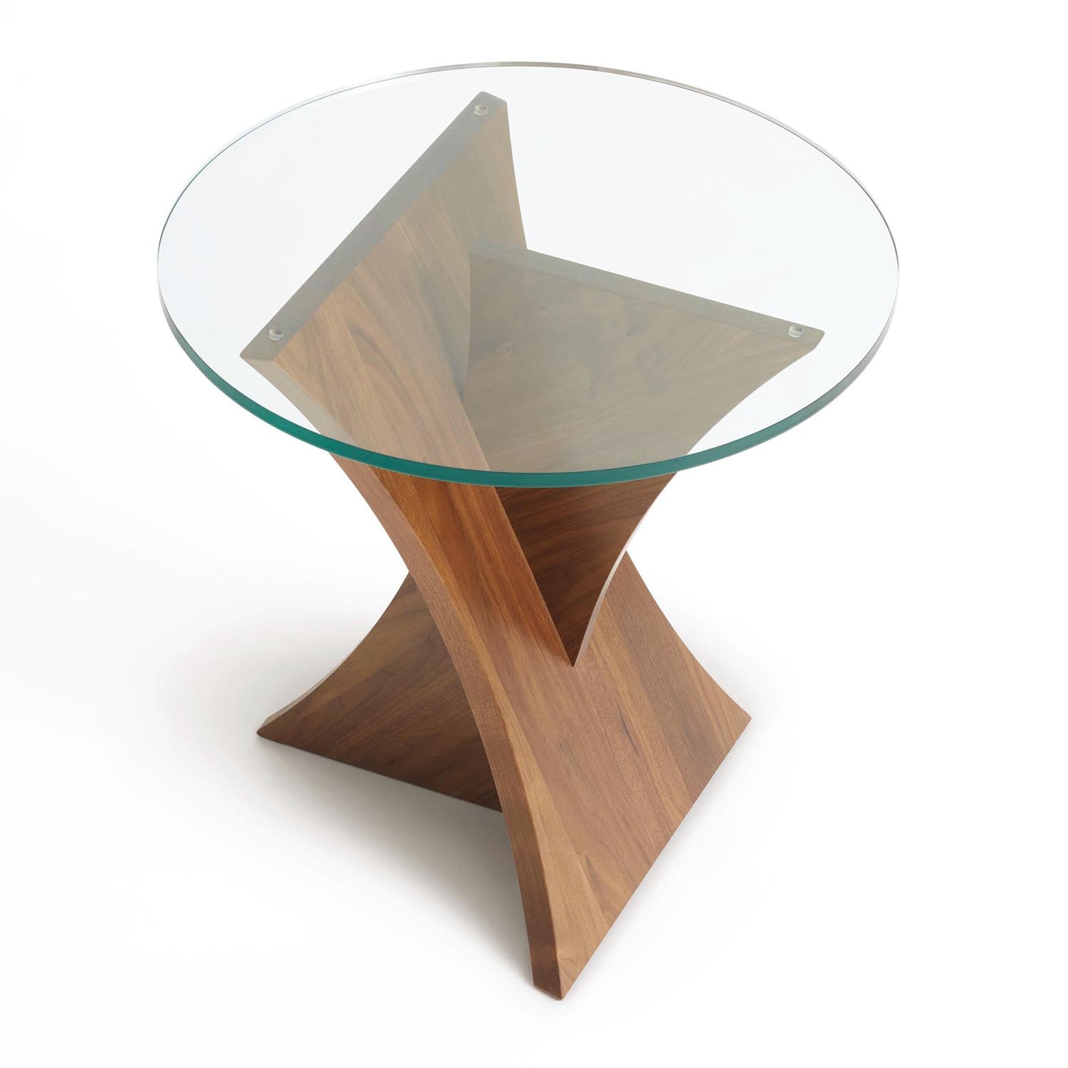 Let your living room make a statement. Each one of these striking occasional tables has been designed to re-imagine traditional forms and style idioms to create compelling visual focal points wherever thy are used. The tables are crafted in solid American black walnut and topped with clear tempered 15mm glass. The finish is GREENGUARD Certified for low chemical emissions.