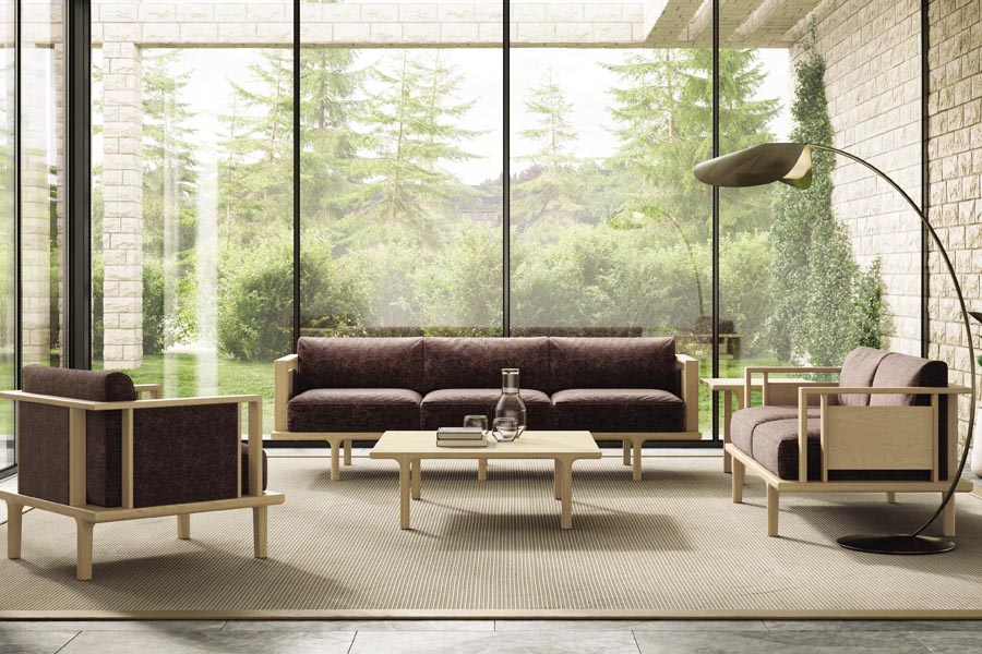 Sierra Seating is crafted in solid Cherry, Oak, or Walnut and available in natural finishes. Sierra is available in a range of microsuedes, fabrics and Sunbrella as well as COM (customer’s own material).