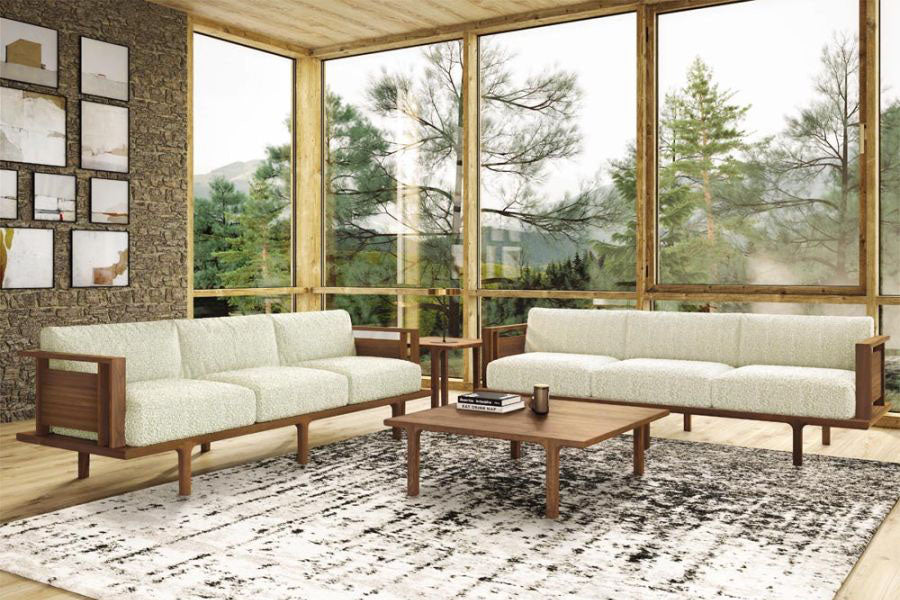 Soft contemporary styling and precision woodworking come together in Sierra to produce a versatile living room collection that is easy to incorporate into any home. Available in a chair, loveseat and sofa, the collection also includes an assortment of coordinated occasional tables for a cohesive living environment. Sierra Seating and Occasional Tables are crafted in solid Cherry, Oak, or Walnut and is available in a range of microsuedes and fabrics. The finish is GREENGUARD Certified for low chemical emissions.