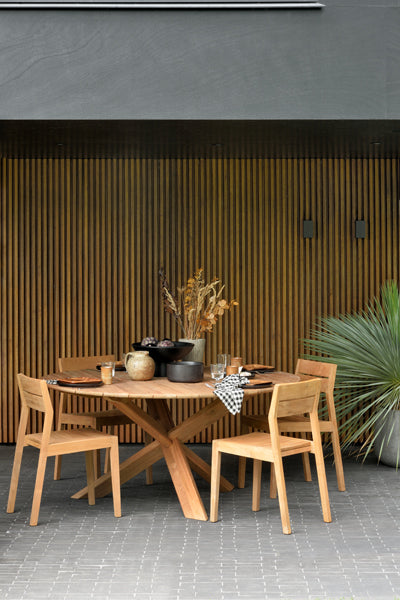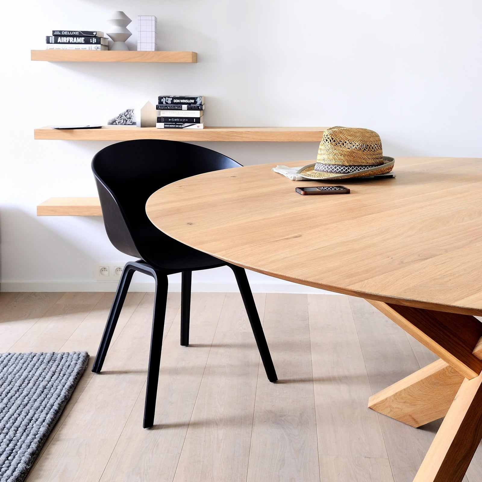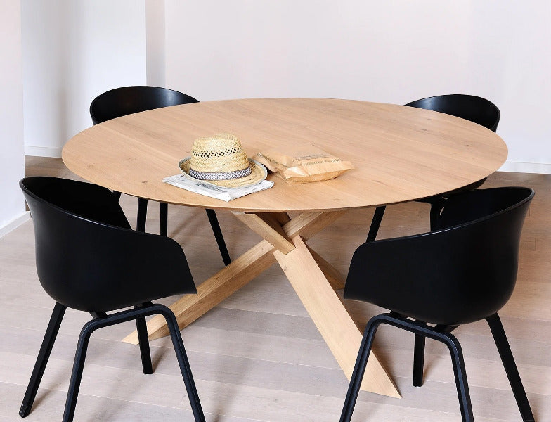 Enhance the aesthetics of the indoor as well as outdoor spaces with the Circle Oak Dining Table. Boasting a timeless classic pattern, this table has a circular top. It has a compact design that can be accommodated in small spaces and at the same time can instantly add extra space in any area. The wooden legs slot together and create a robust base. This table has a sturdy construction and is crafted from solid oak wood that adds strength and durability. The water based oil finish with a white pigment looks ultra-classy and elegant.