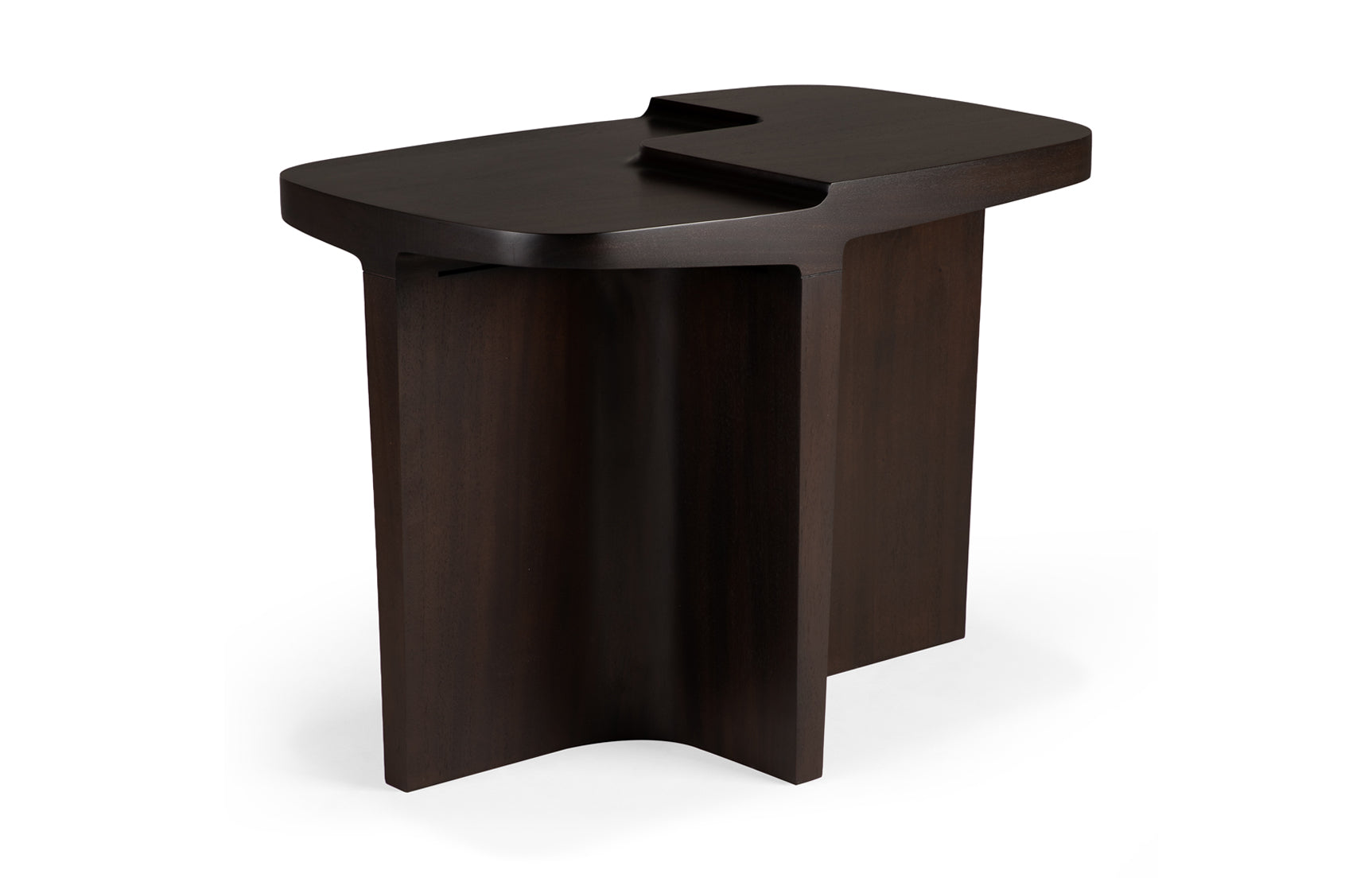 With bold presence and a distinctive form, the Brutalist offers a striking interpretation of functional furniture. Crafted entirely from solid mahogany, each piece is defined by its strong silhouette and carved openings—balancing mass with negative space. A rich stain and varnish finish enhance the natural grain of the wood, adding depth and warmth to its architectural shape. Both statement and surface, the Brutalist collection brings enduring character to any setting.