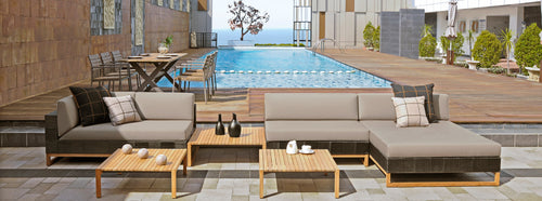 Modern and updated, natural teak wood elements define the EKKA outdoor furniture collection by MAMAGREEN. The ever-popular EKKA lounger, with super-sized feature wheels, is now available in a second, minimalist all-teak-frame version. The extensive sectional lounge selection has MAMAGREEN signature 100% outdoor cushions and special quilted upholstery detail, also resting on smooth teak. Additional EKKA styles include a gorgeous dining chair. Designed by Vincent Cantaert & Barbara Widiningtias. Shop our collection below to upgrade your outdoor space.