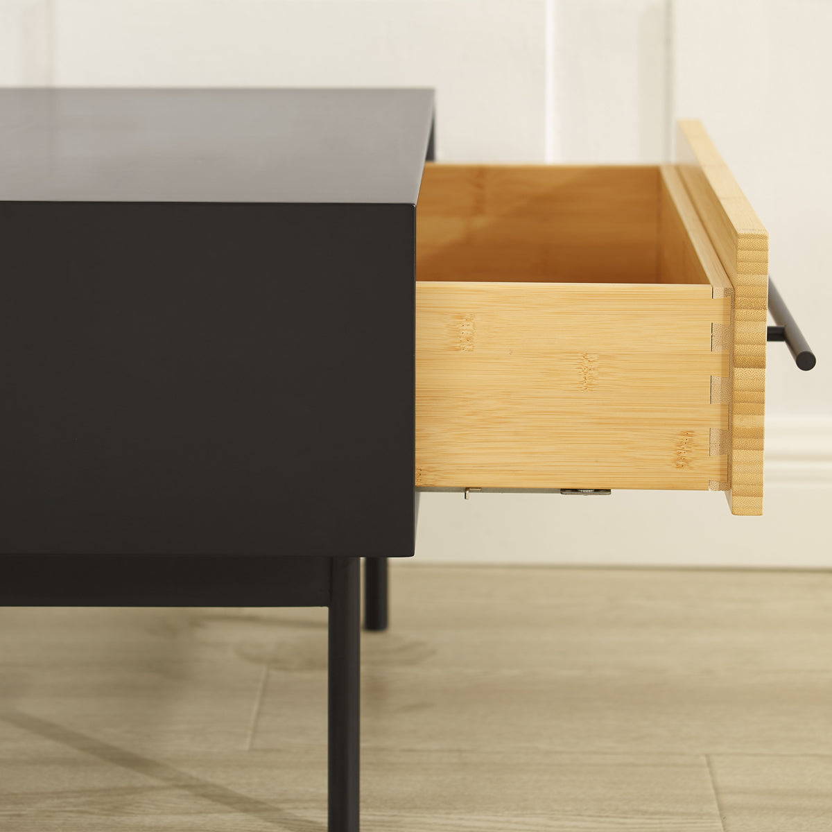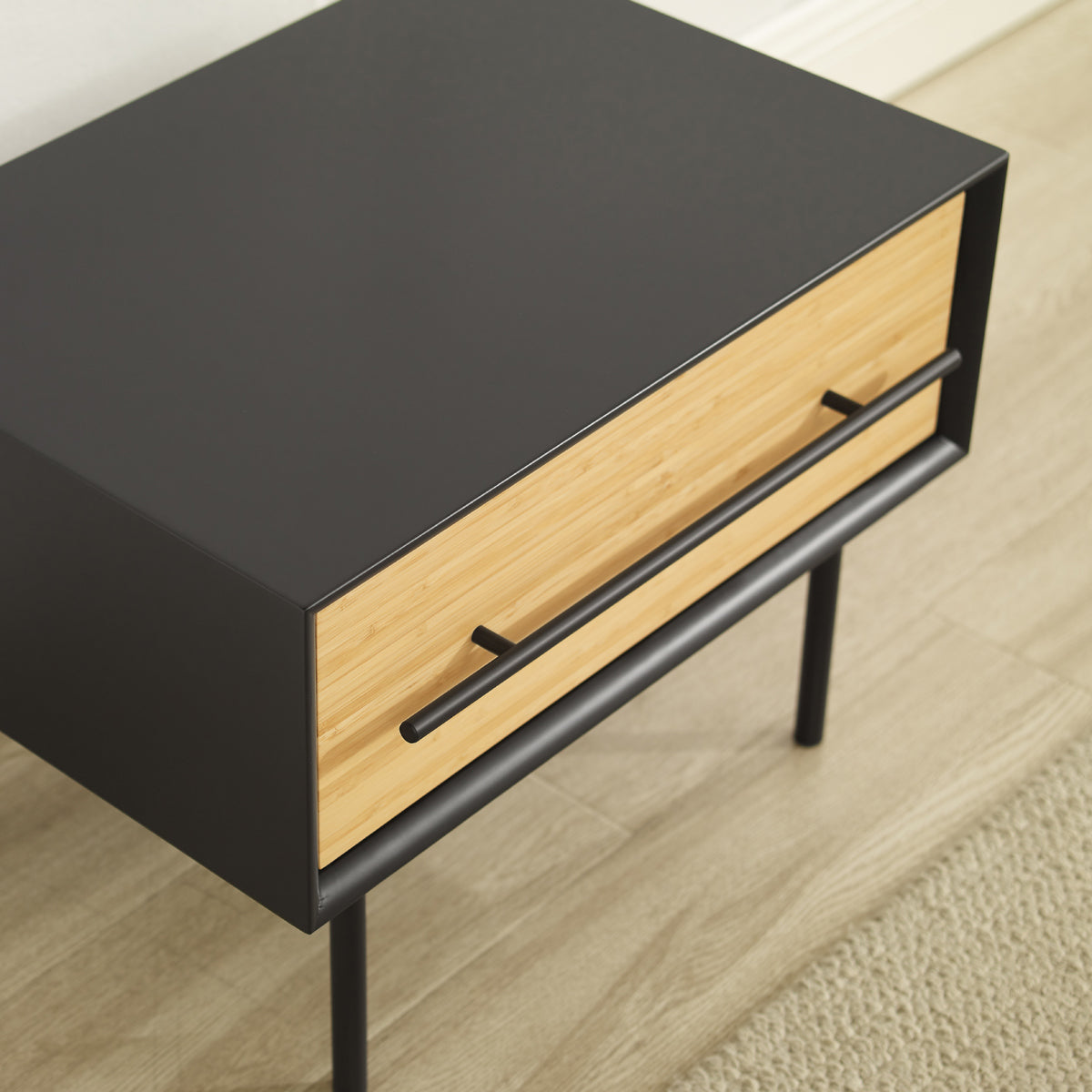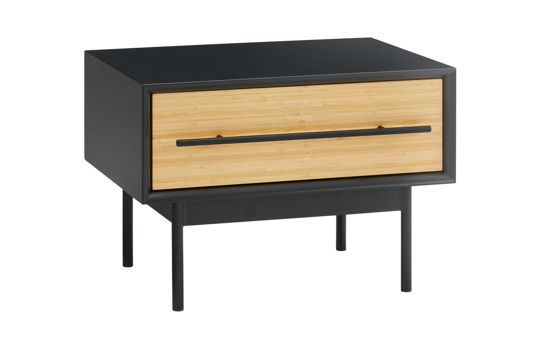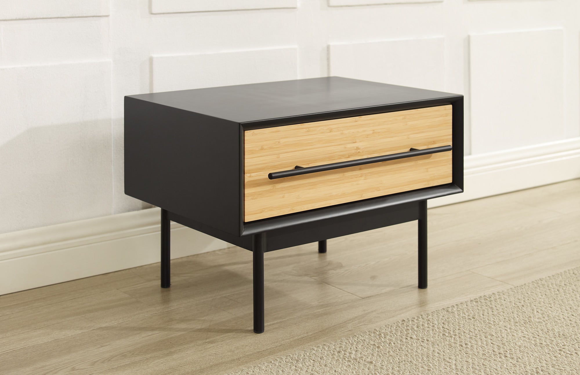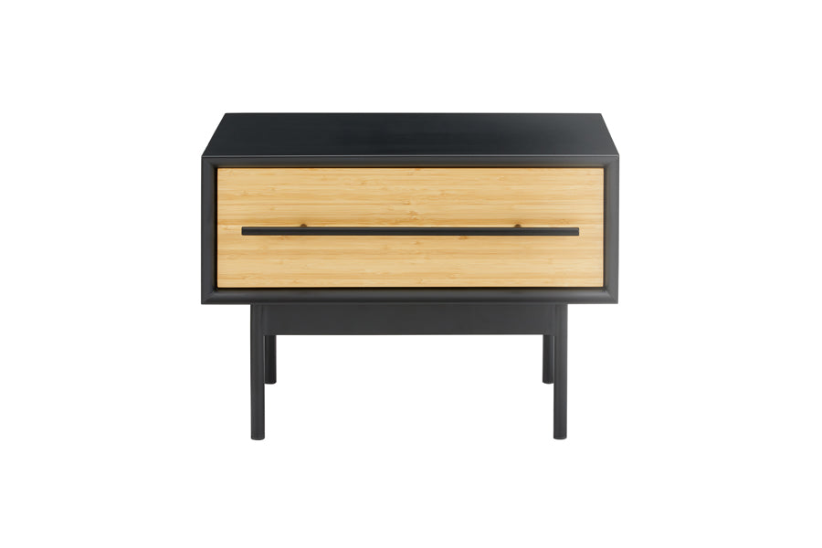 Create a casual and sophisticated look with Greenington’s Santa Cruz nightstand. The sleek modern design and simple clean lines of the single drawer Santa Cruz nightstand features a craftsman-built frame made from solid bamboo, lacquered in a matte black finish on a strong steel base. Black steel accents complement Wheat bamboo drawers and black lacquer surfaces. The wide solid bamboo drawer is built using English dovetail joinery and uses under-mounted, soft-close glides for easy opening and closing. The drawer is faced in Wheat solid bamboo material, with a drawer box of warm caramelized solid bamboo, and accented with a slim black steel drawer pull. Environmentally safe, Wheat is not a surface stain, the color is the result of an innovative caramelization process using heat, steam, and pressure to transform the solid bamboo material into Wheat’s light color. Each Santa Cruz nightstand is beautifully finished on all four sides and ships professionally assembled. Discover the expert craftsmanship packed into each piece of Greenington bamboo furniture, made using a renewable resource harvested from fully sustainable and rapidly growing forests.