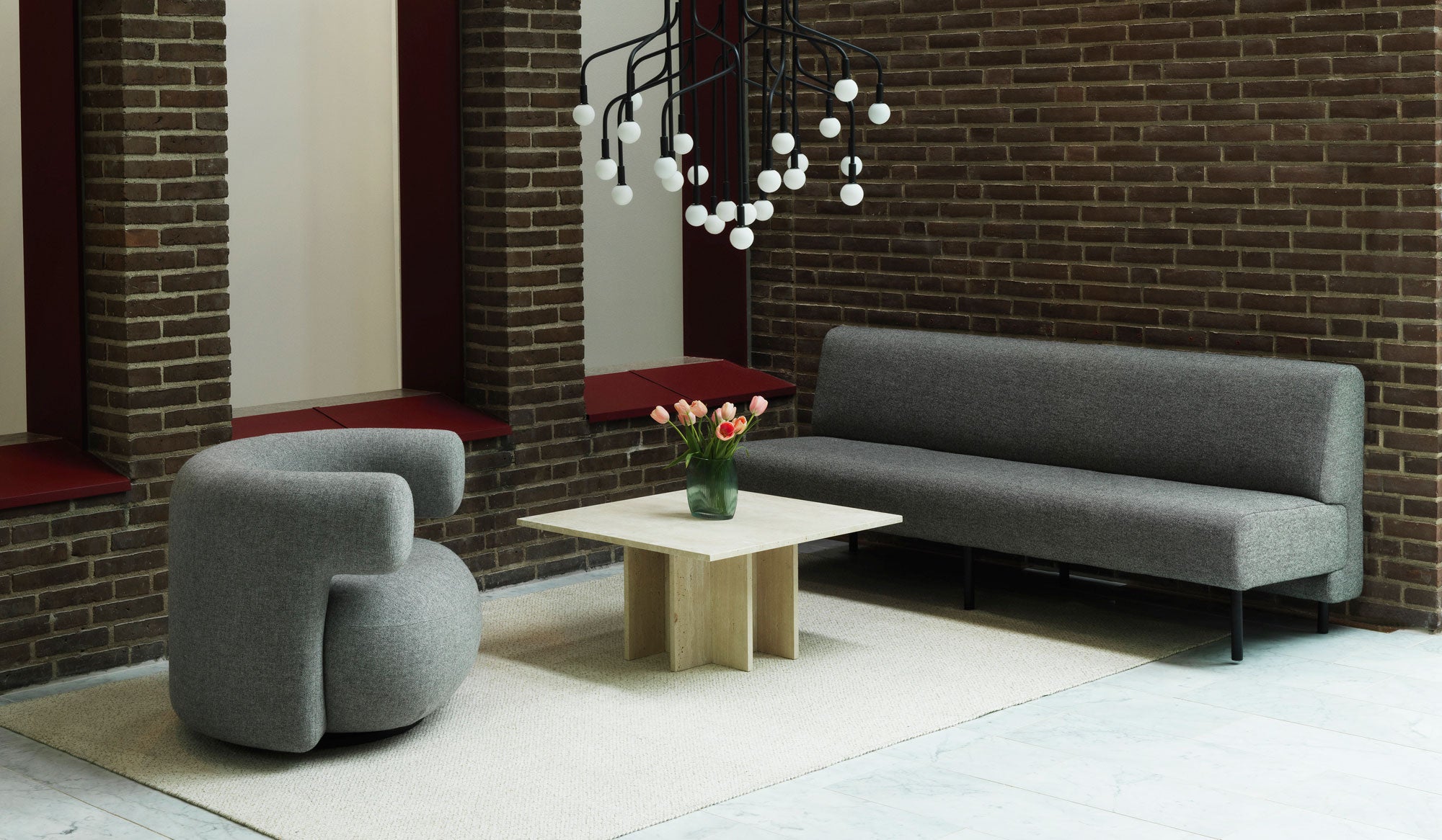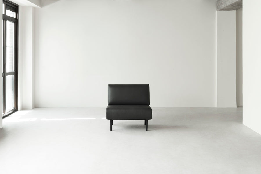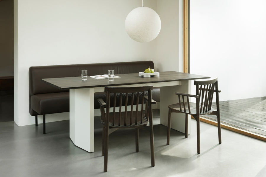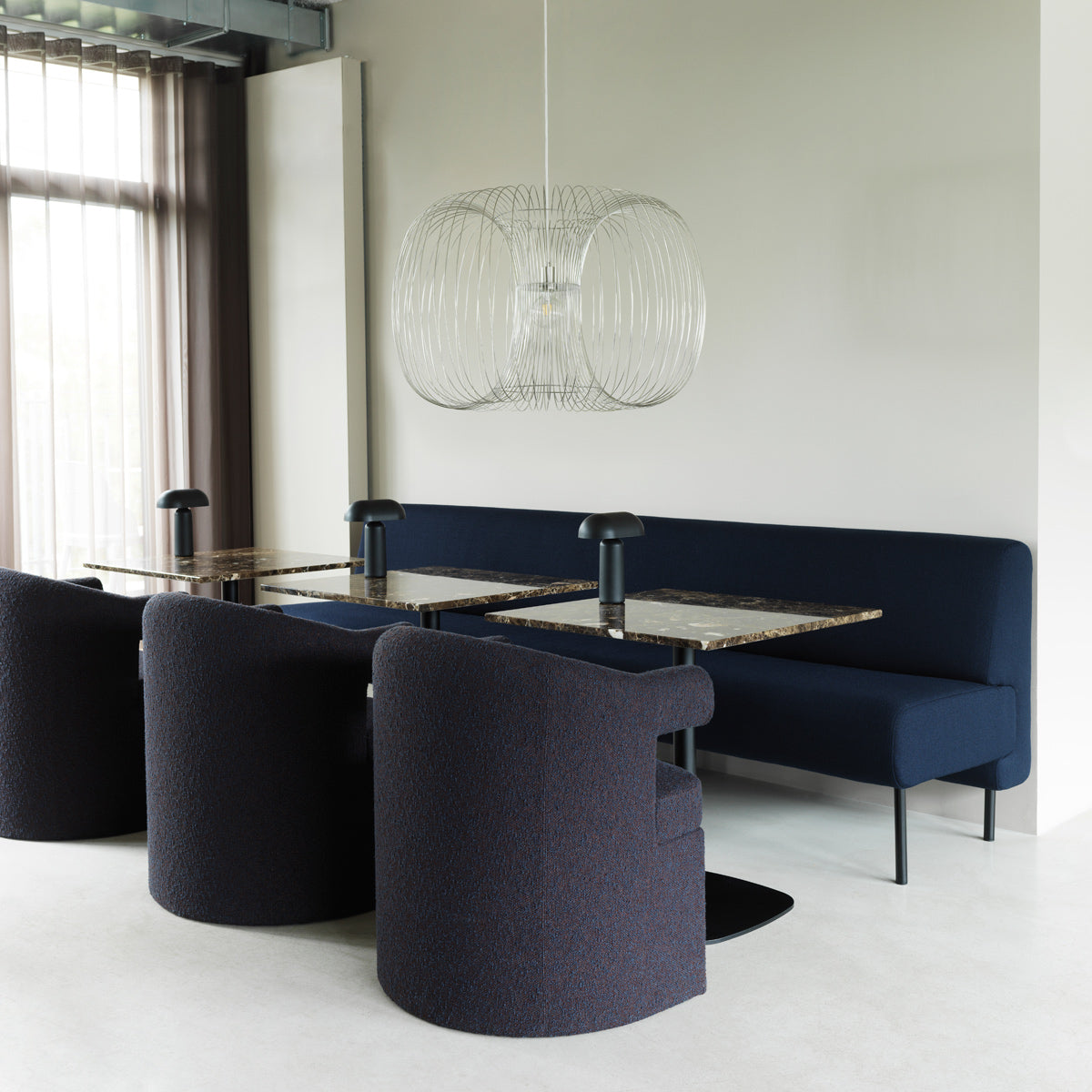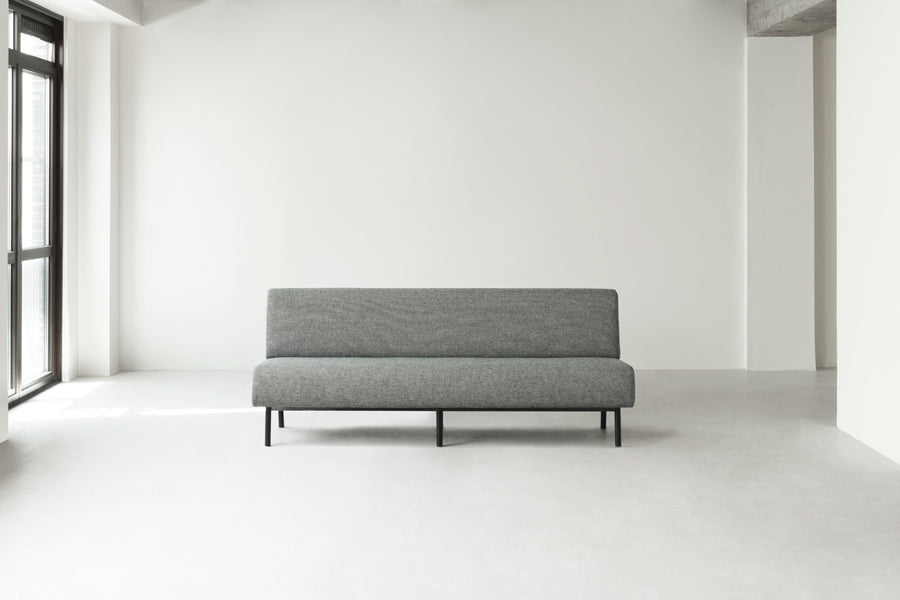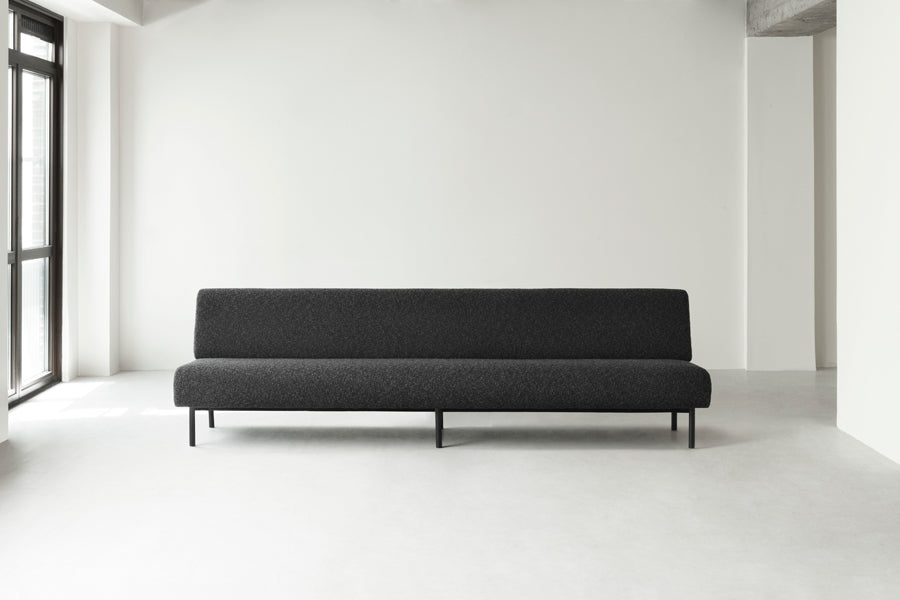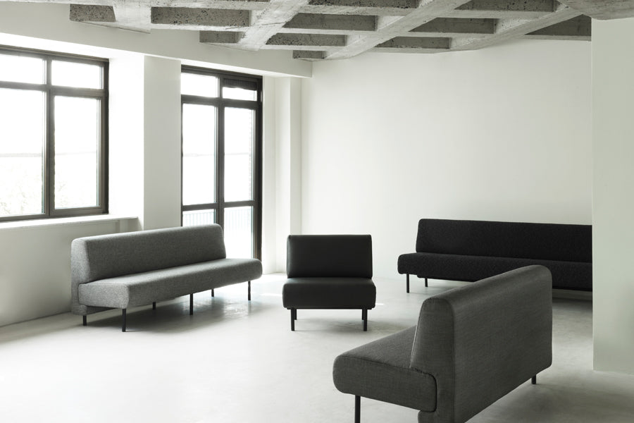 Frame is a sofa with a distinctively high seat, making it particularly ideal for dining environments or other areas where a higher seat is desired. The design is the epitome of minimalism, consisting of only two elements: A simple, slightly rounded seat elegantly integrated into the gently angled backrest. Frame draws inspiration from classic American diners, often characterized by smaller booths with quilted dining sofas. Designer Simon Legald explains, "The idea was to take the heavy, upholstered dining sofa out of the diner and give it a more contemporary expression. Frame has been an exploration of how to create a similar product that better caters to modern needs and interiors." The result is a completely clean, simple profile, extruded into four different lengths. Appropriately named βFrameβ, the collection gracefully frames the surroundings in which it is placed. The design is crafted from high-quality PU foam with an internal wooden reinforcement structure and powder-coated steel legs. Frame can be customized with Normann Copenhagen's wide-ranging assortment of upholstery options, which offers textiles and leathers in hundreds of thousands of colors and variations.