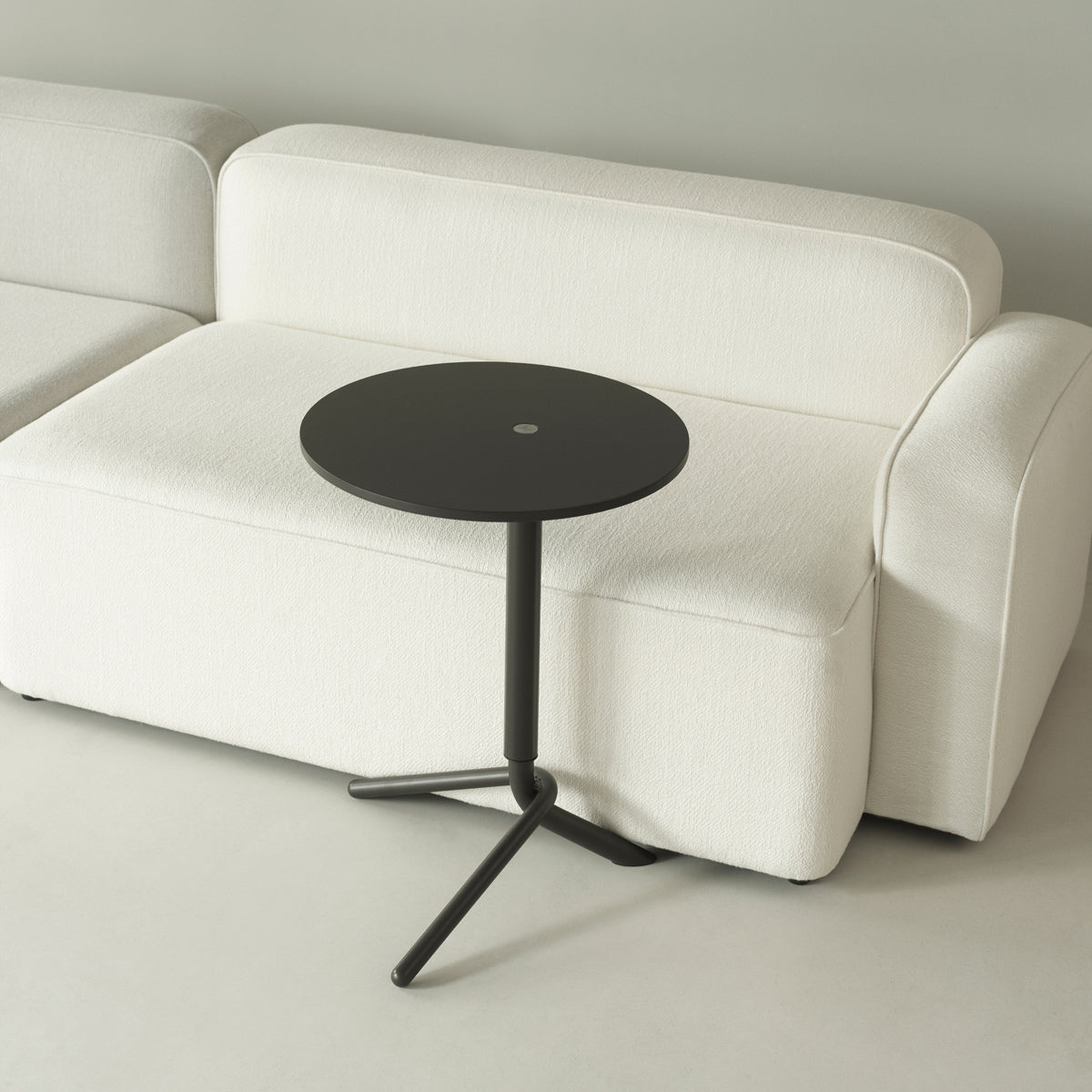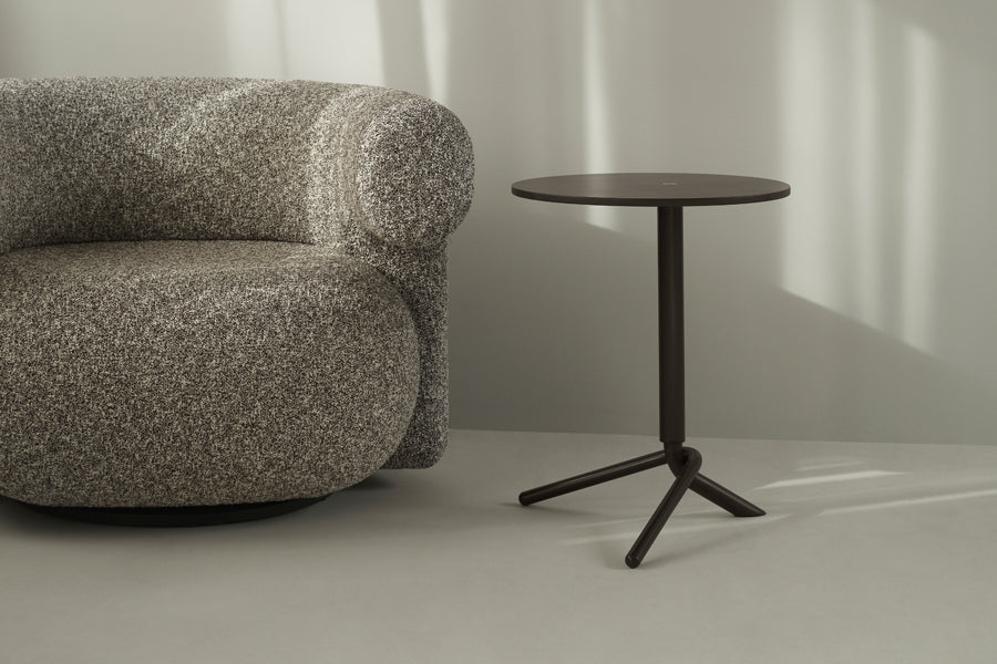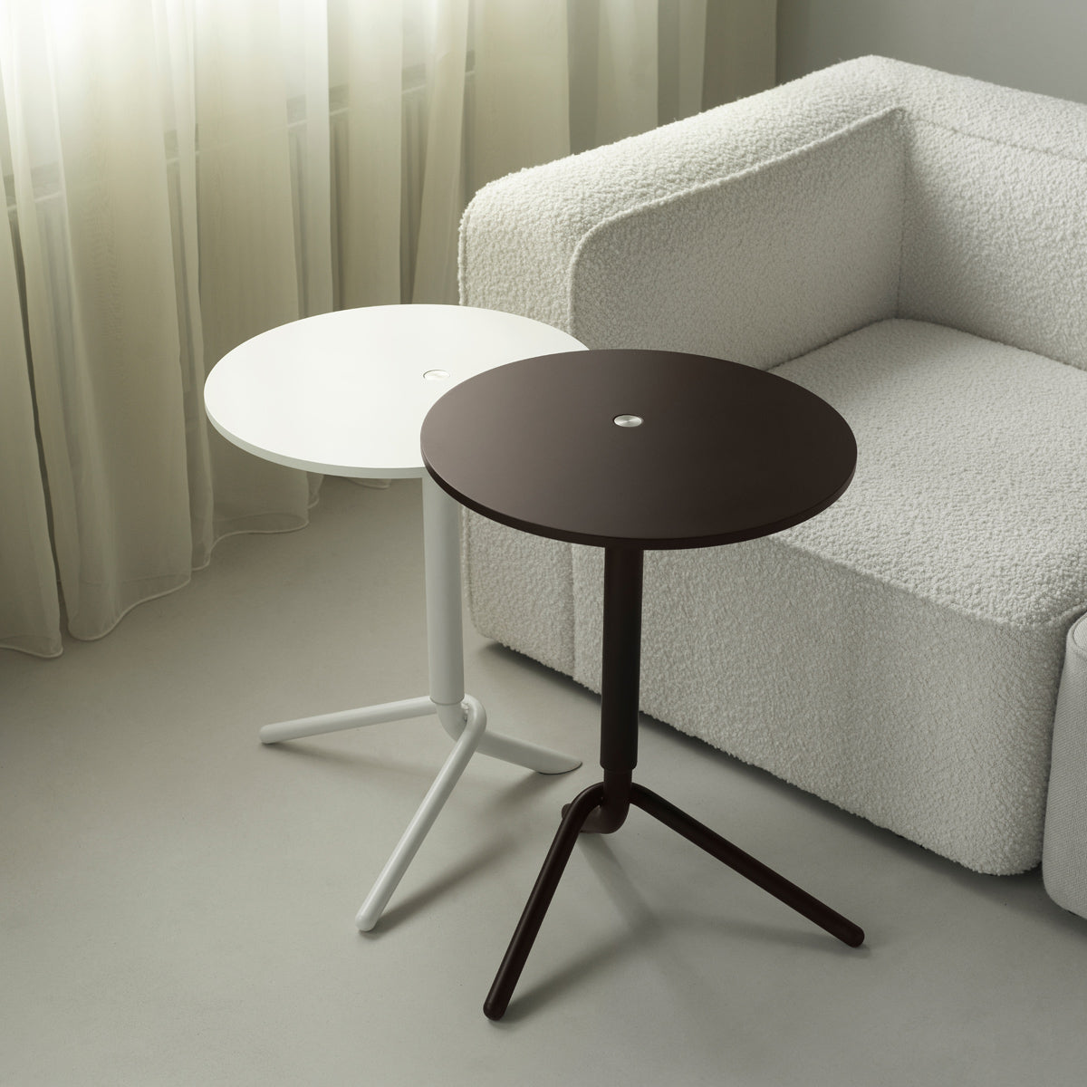 Lift Side Table is a versatile and lightweight side table designed to adapt according to your needs. Whether placed beside a sofa, next to your bed, or used as a temporary work station, its height-adjustable function and light weight makes it effortlessly adaptable. A simple press of the button on the tabletop allows it to elevate smoothly, while a gentle push with applied pressure lowers it back downβintuitive and seamless. The design is as functional as it is striking. The distinctive base construction features an elegant, curved support that extends into a sculptural, stable foundation, lending Lift a visually airy yet solid presence. This unique design detail sets it apart, making it both a practical and artistic addition to any space.