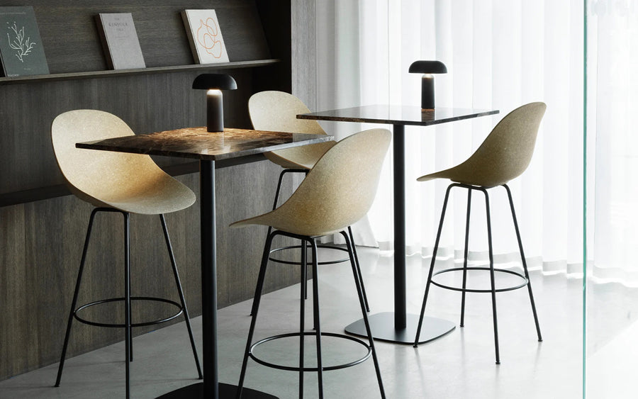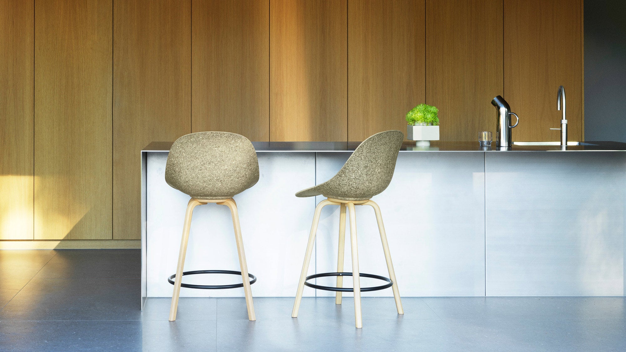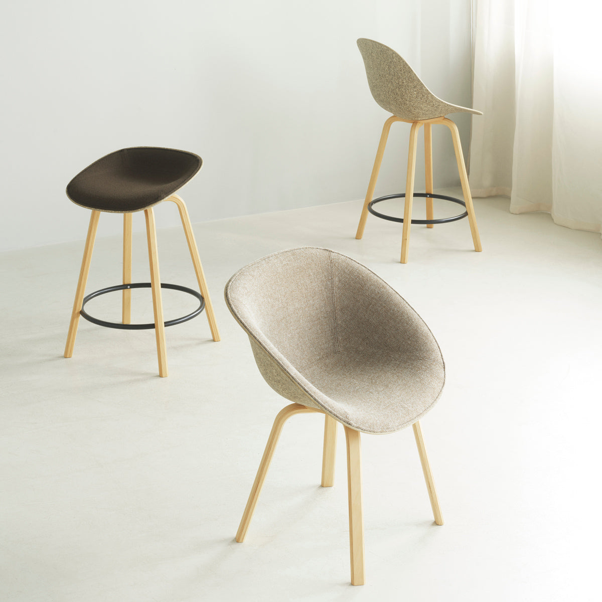 With innovation and circularity at its core, Mat is an exploration of how to create a contemporary shell chair with materials that have a lower environmental impact than the industry norm. Designed by Danish design studio Foersom & Hiort-Lorenzen, this new chair design is the result of years of research and development. The shell of the Mat Chair is innovatively crafted using hemp and eelgrass, a type of seaweed. The materials constitute the very essence of the design. Not only do the materials provide a more responsible product, they also play a key role in the aesthetic of the design, highlighting the natural beauty and tactility of the materials. With circularity and responsibility at its core, the Mat collection is designed for disassembly and recycling, ensuring that the components of the Mat Chair can be recycled into new productions for a fully circular life cycle. Mat Chair collection includes a dining chair with two shell typologies, a barstool in two heights, a bar chair in two heights and a bar armchair in two heights, all available with a hemp shell or a hemp shell with added eelgrass, as well as with front or full upholstery. The base is available in either a powder coated steel version in two timeless colors of Black or Cream, or a wooden version crafted from beech. The wide-ranging nature of the collection enables the chair to cater to a diversity of spaces from restaurants to educational facilities to hotel lobbies as well as in private residential settings.