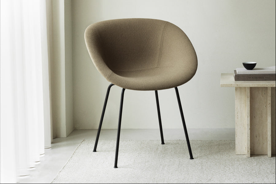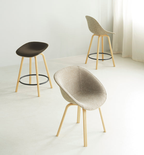 With innovation and circularity at its core, Mat is an exploration of how to create a contemporary shell chair with materials that have a lower environmental impact than the industry norm. Designed by Danish design studio Foersom & Hiort-Lorenzen, this new chair design is the result of years of research and development. The shell of the Mat Chair is innovatively crafted using hemp and eelgrass, a type of seaweed. The materials constitute the very essence of the design. Not only do the materials provide a more responsible product, they also play a key role in the aesthetic of the design, highlighting the natural beauty and tactility of the materials. With circularity and responsibility at its core, the Mat collection is designed for disassembly and recycling, ensuring that the components of the Mat Chair can be recycled into new productions for a fully circular life cycle. Mat Chair collection includes a dining chair with two shell typologies, a barstool in two heights, a bar chair in two heights and a bar armchair in two heights, all available with a hemp shell or a hemp shell with added eelgrass, as well as with front or full upholstery. The base is available in either a powder coated steel version in two timeless colors of Black or Cream, or a wooden version crafted from beech. The wide-ranging nature of the collection enables the chair to cater to a diversity of spaces from restaurants to educational facilities to hotel lobbies as well as in private residential settings.