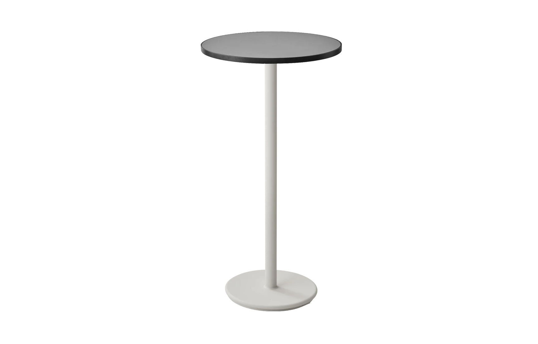 Modern and timeless design · High lightfastness · Scratch-resistant surface · Long lifespan · Minimal maintenance and cleaning. Go has an elegant design and is ideal wherever a bar table is required. The minimalistic and understated design makes the table a perfect match for any chair. Go allows you to mix and match colours and styles. The production material is powder-coated, all-weather aluminium and a counter weight base maximizes stability and strength.