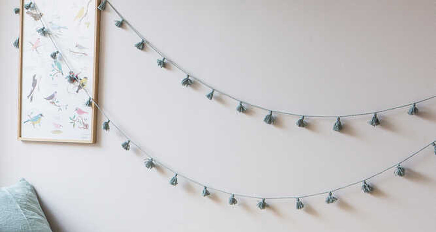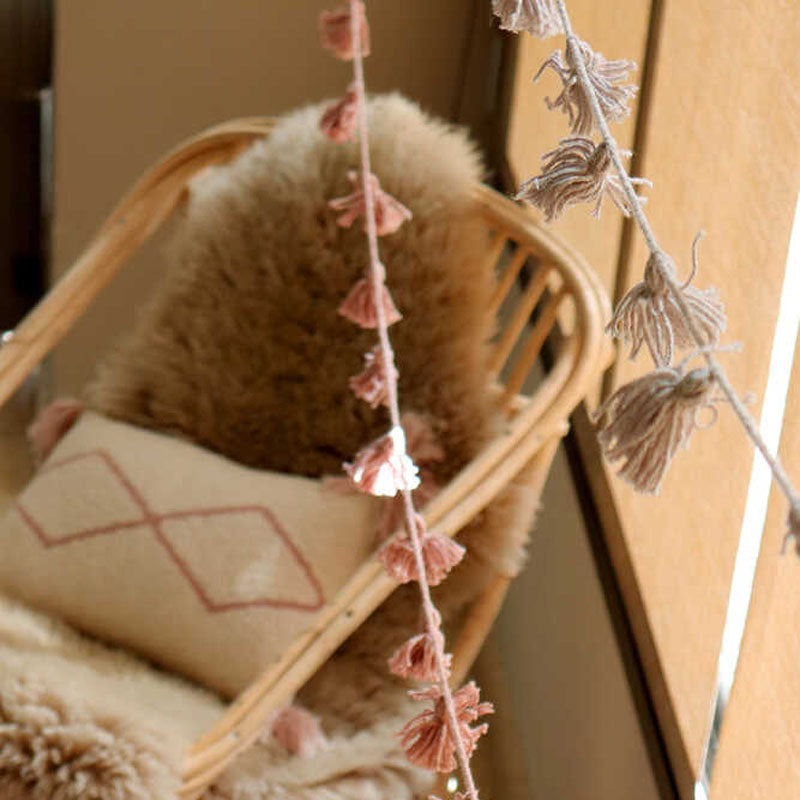 There is no party without the new braided cotton garland in blue color, perfect to decorate your children's room. It is made with mini cotton tassels in match color placed with a distance of 12 cm between each other. Comes rolled up with a gift box in kraft paper.