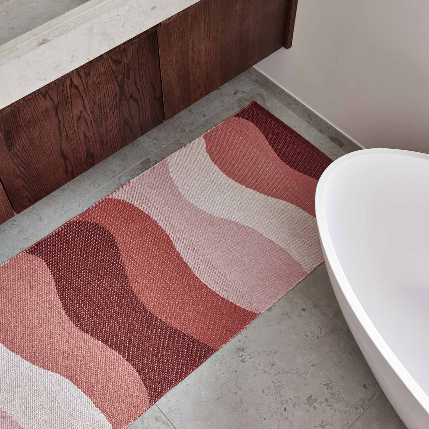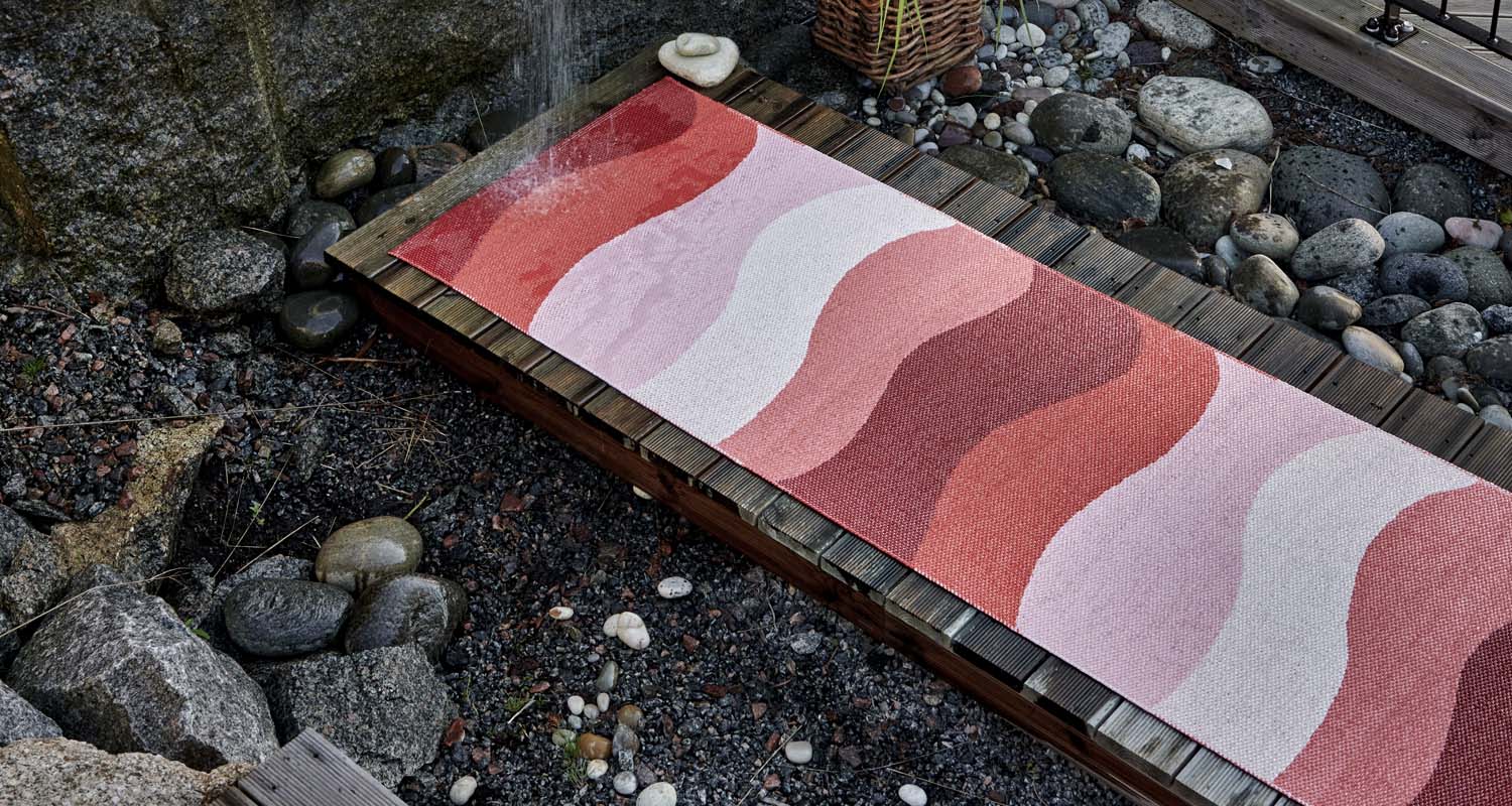 URVI captures the gentle movement of nature through a flowing wave pattern that feels both organic and graphic. The design is multicolored yet tone on tone, creating soft transitions and a harmonious sense of depth. Its balanced composition and fluid lines bring calm energy and visual interest to any setting.