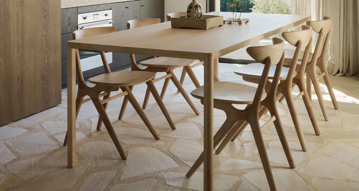 Beauty is in the eye of the beholder. With sleek, angular, front legs and flowing smooth connections, the Eye dining chair is a hallmark solid wooden seating design. The curved backrest, reminiscent of a winked eye, inspired the name of the chair. Think subtle elegance with a stylish edge. Designed by Alain van Havre.