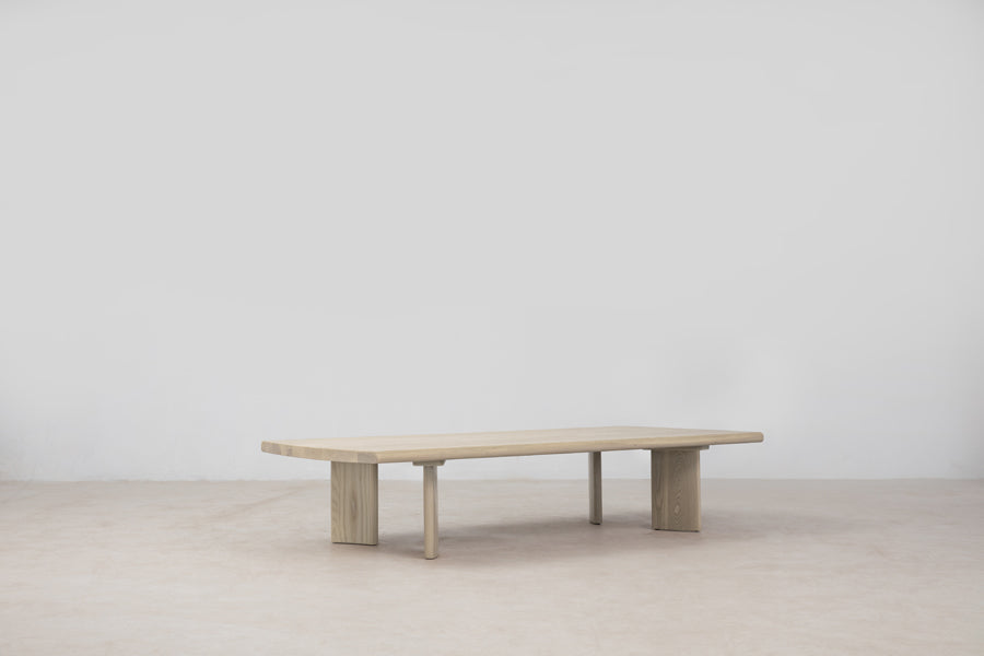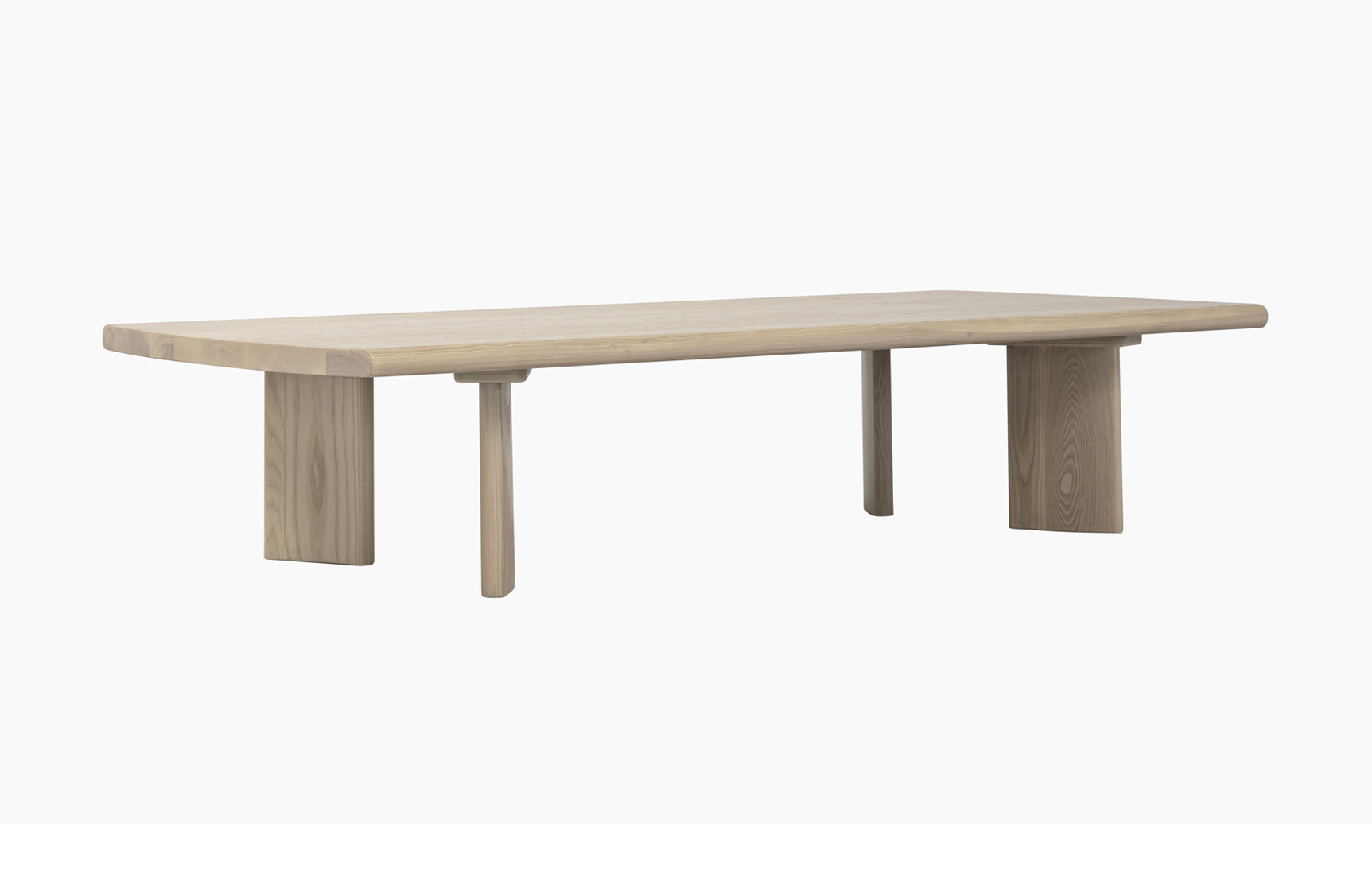 The Crest Coffee Table is an extension of the classic Crest collection, featuring the offset curved columnar legs of the classic Crest Table, but on a lower profile coffee table. Made from all solid FSC certified White Ash without veneer.