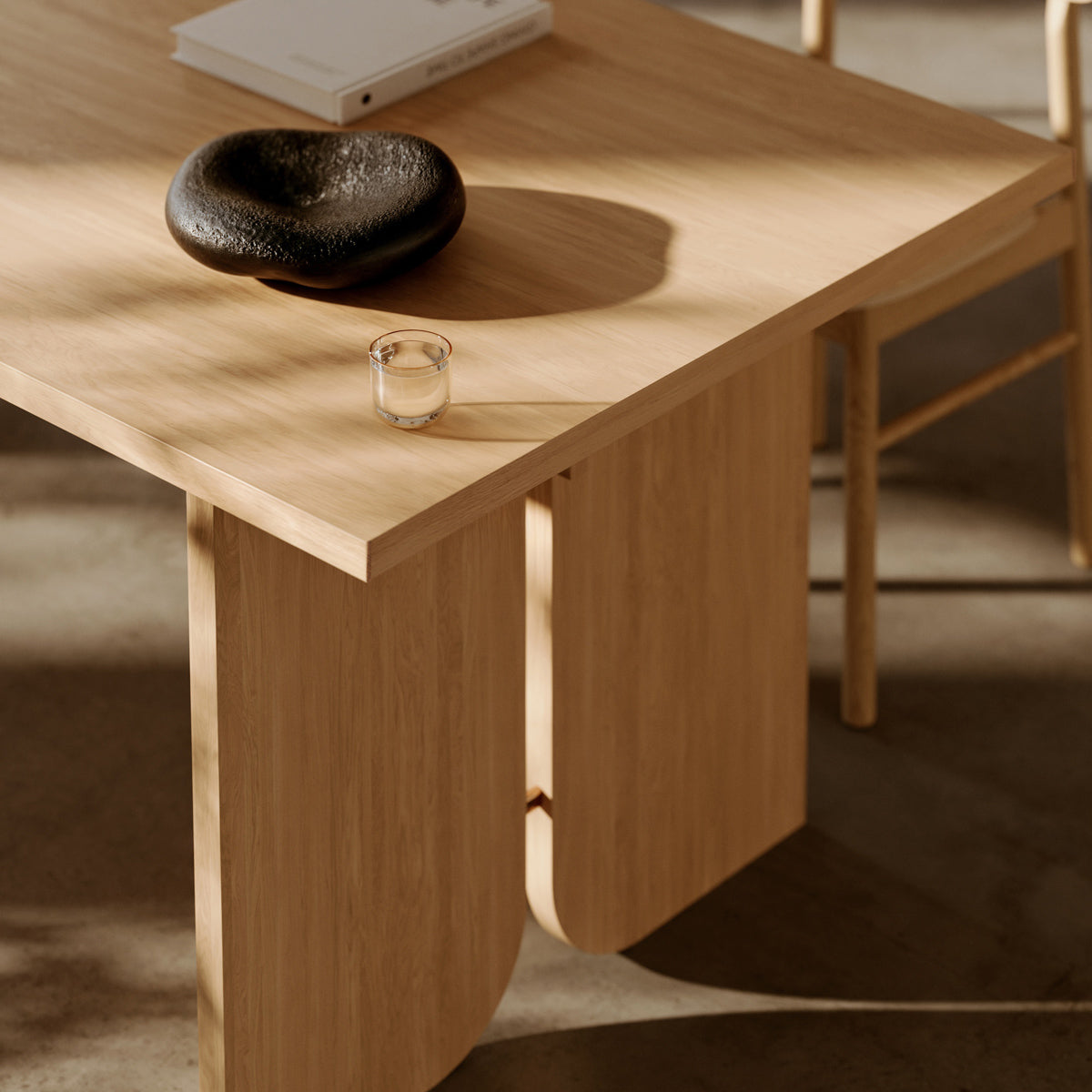 Designed by Magnus Pet tersen. The Kimono dining table is designed as an ode to the genuine strength and refined simplicity of traditional Japanese craftsmanship. Every joint and line is carefully considered in an honest construction that reflects this heritage. With its understated silhouette, Kimono invites a closer look. Gentle cur ves sof ten the architectural frame, while the stretcher, passing visibly through each leg, becomes a subtle signature. The gener-ous tabletop of fers space to gather and lets the natural beaut y of the wood unfold. A piece that feels grounded and enduring, yet carries a lightness in its expression. Magnus Pet tersen is an award-winning Nor wegian furniture and lighting designer based in the UK. With a rich background in various industries, he runs his own studio, craf ting designs with timeless appeal and purpose, aiming to evoke emotions and forge meaningful connections.
