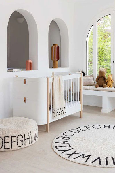 A pouf that teaches you the alphabet! This timeless, neutral-colored decor accessory is the perfect match for our ABC rug and other items of the eponymous collection. Use it to create a reading nook or improvised seating in the playroom, and watch the little ones run around it as they recite their ABCs!