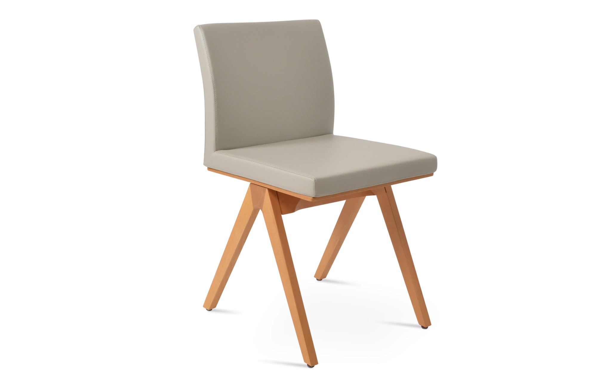 Aria Fino Chair is a contemporary dining chair with comfortable upholstered seat and backrest on solid beech legs. The seat has a steel structure with βSβ shape springs for extra flexibility and strength. This steel frame molded by injecting polyurethane foam. Aria seat is upholstered with a removable velcro enclosed fabric, leatherette, PPM, leather or wool fabric slip cover. Other colors are available as a special order with a minimum quantity required. Aria Fino Chair is designed by Tayfur Ozkaynak.