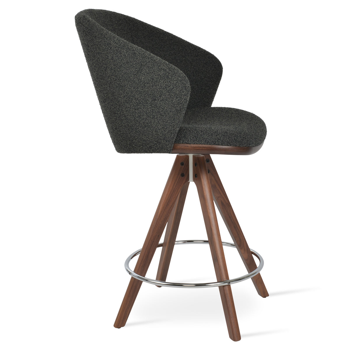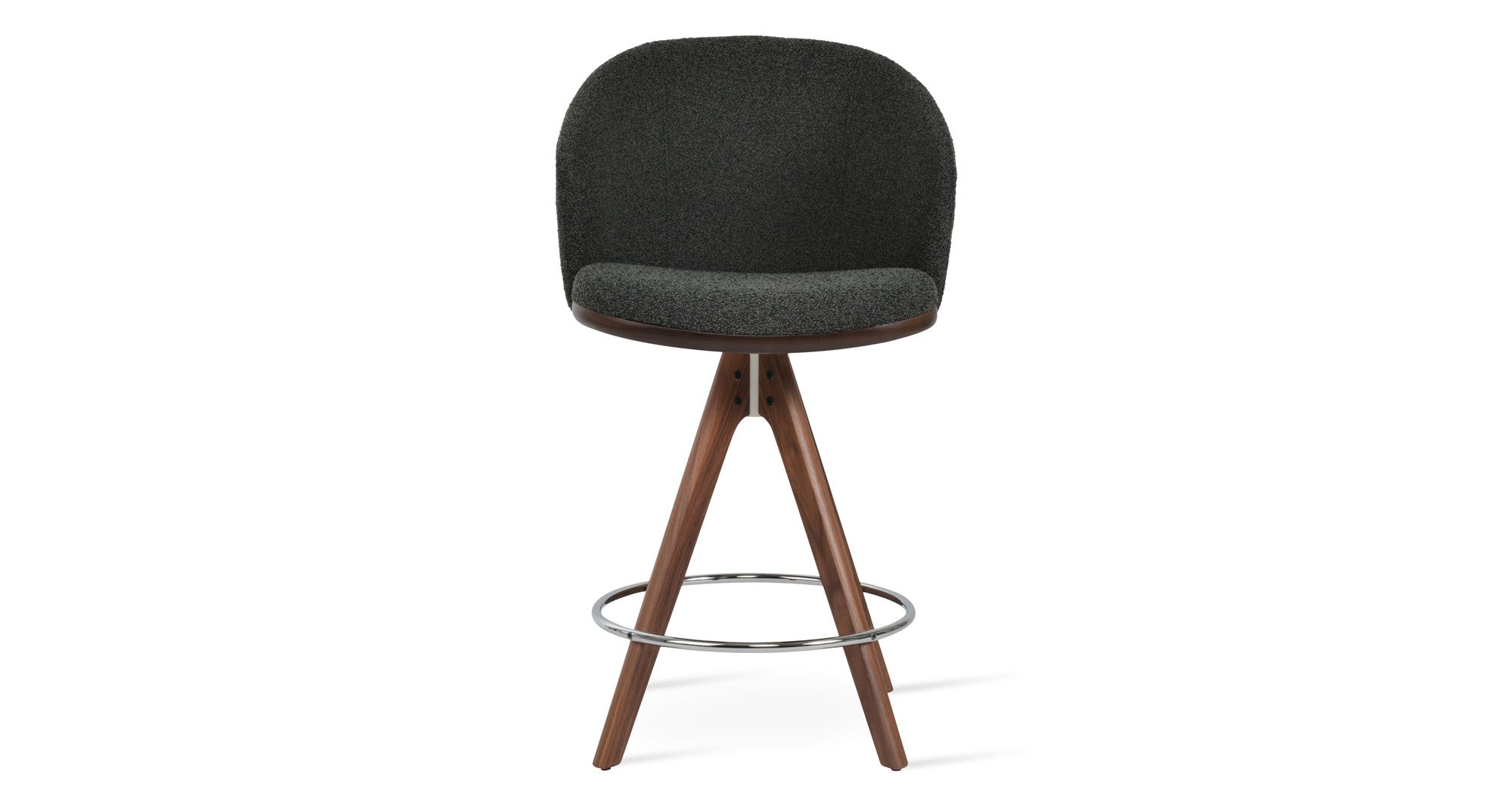 Athena Pyramid is a contemporary stool with a comfortable upholstered seat and backrest on wood legs available in walnut and natural finish. The seat has a steel structure with βSβ shape springs for extra flexibility and strength. This steel frame molded by injecting polyurethane foam. Athena seat is upholstered with a removable zipper enclosed leather, PPM, leatherette or wool fabric slip cover. Athena Pyramid Stool may be upholstered with variety of other colors as a special order with a minimum of quantity required. This contemporary stool is suitable for residential use. Athena Pyramid Stool is designed by Industrial Modern Team.