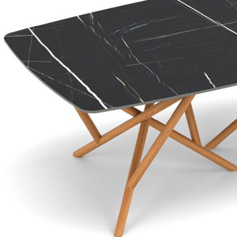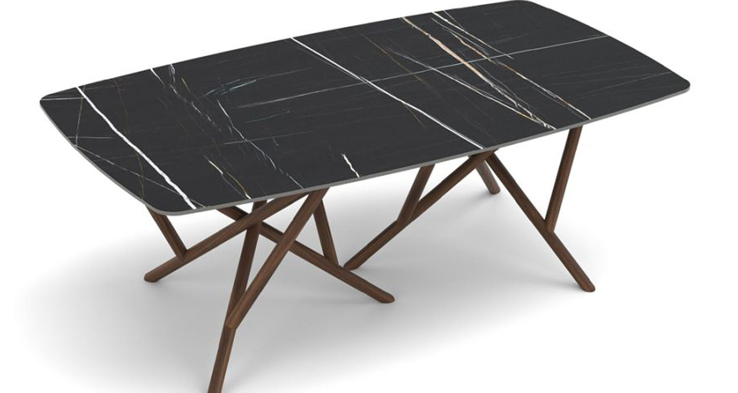 Baton is crafted in solid American black walnut hardwood or cherry hardwood with five finishes or oak hardwood with five finishes. Tables in walnut are finished with a low sheen (10 sheen) topcoat and topped with clear tempered 15 mm glass (glass tops are imported). The finish is GREENGUARD Certified for low chemical emissions.