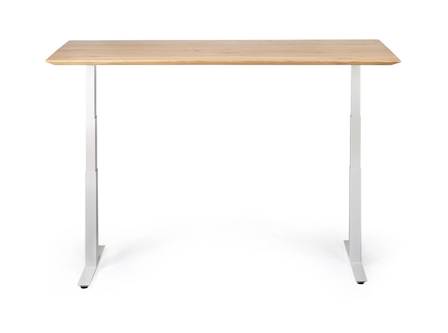 With the importance of health and good posture in mind, Alain van Havre developed the Bok adjustable desk. The motorized system in its legs allows the tabletop to be elevated to the height of your liking. That way, you can easily switch between sitting and standing throughout the workday. Choose between white or black metal legs, and a table top in oak or black tainted oak. The oak table top and the metal legs are sold separately.