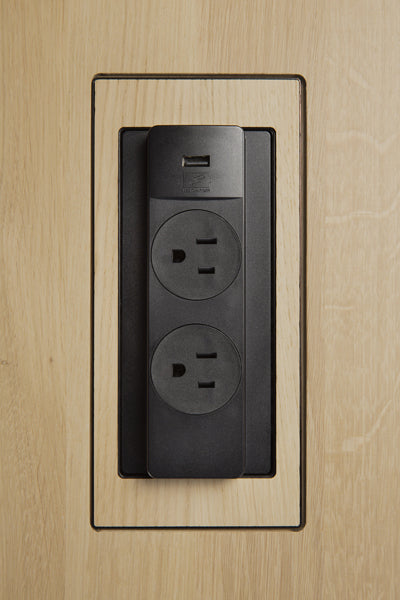The Bok cowork desk by Alain van Havre is the perfect fit for a coworking space. Its wider design allows two people to sit opposite each other with plenty of room for both. Three sets of power outlets are integrated in the design.