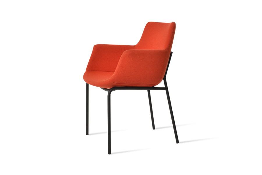 Bottega Harris is a unique dining chair with a comfortable upholstered seat and backrest on harris metal base. The seat has a steel structure with βSβ shape springs for extra flexibility and strength. This steel frame is molded by an injecting polyurethane foam. Bottega seat is upholstered with a removable zipper enclosed leather, PPM, leatherette or wool fabric slip cover. This contemporary chair is suitable for both residential and commercial use. Bottega Harris is designed by Tayfur Ozkaynak.