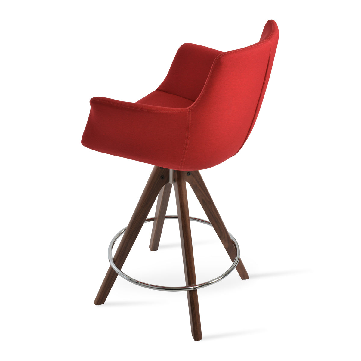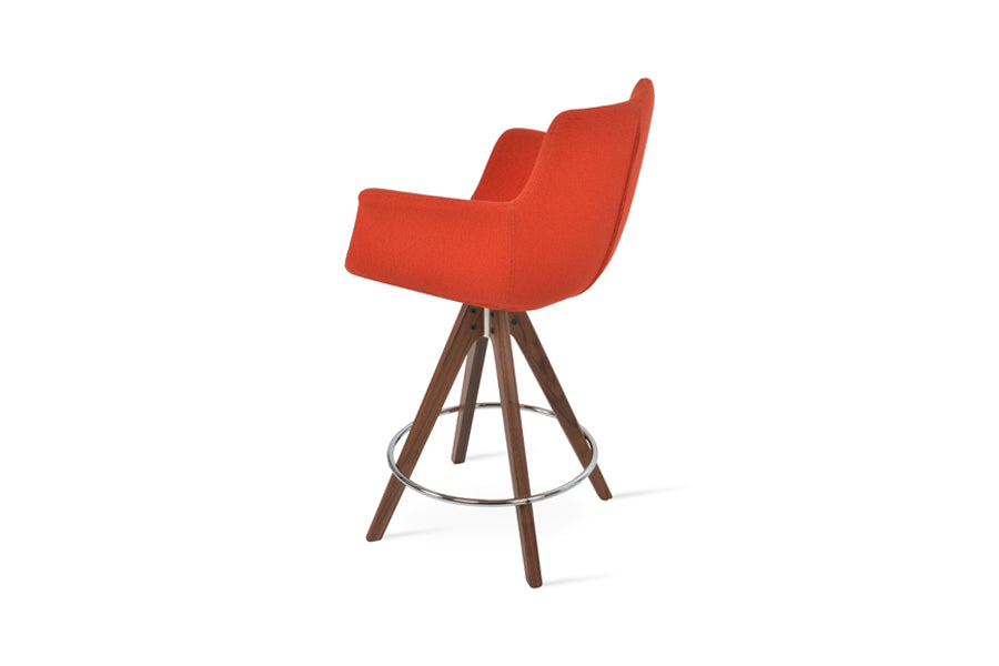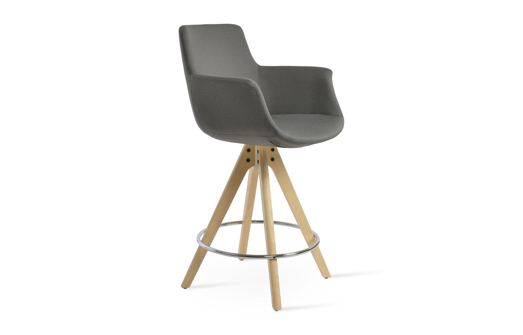Bottega Pyramid is a contemporary stool with a comfortable upholstered seat and backrest on wood legs available in walnut and natural finish. The seat has a steel structure with βSβ shape springs for extra flexibility and strength. This steel frame molded by injecting polyurethane foam. Bottega seat is upholstered with a removable zipper enclosed leather, PPM, leatherette or wool fabric slip cover. Bottega Pyramid Stools may be upholstered with variety of other colors as a special order with a minimum of quantity required. This contemporary stool is suitable for both residential and commercial use. Bottega Pyramid Stool is designed by Tayfur Ozkaynak.