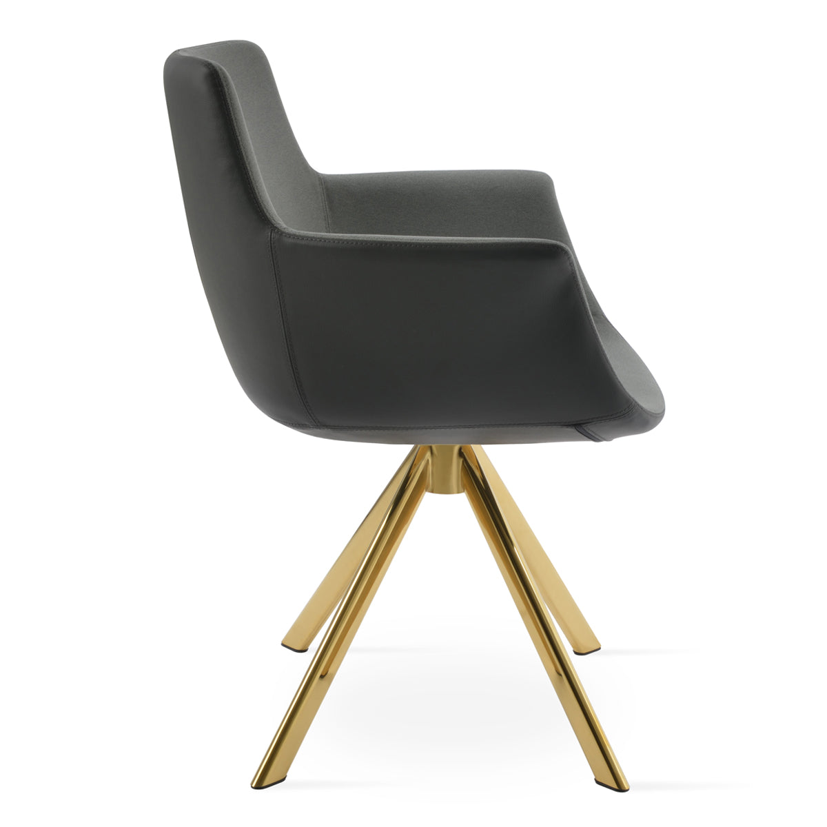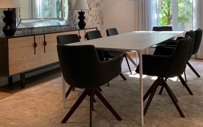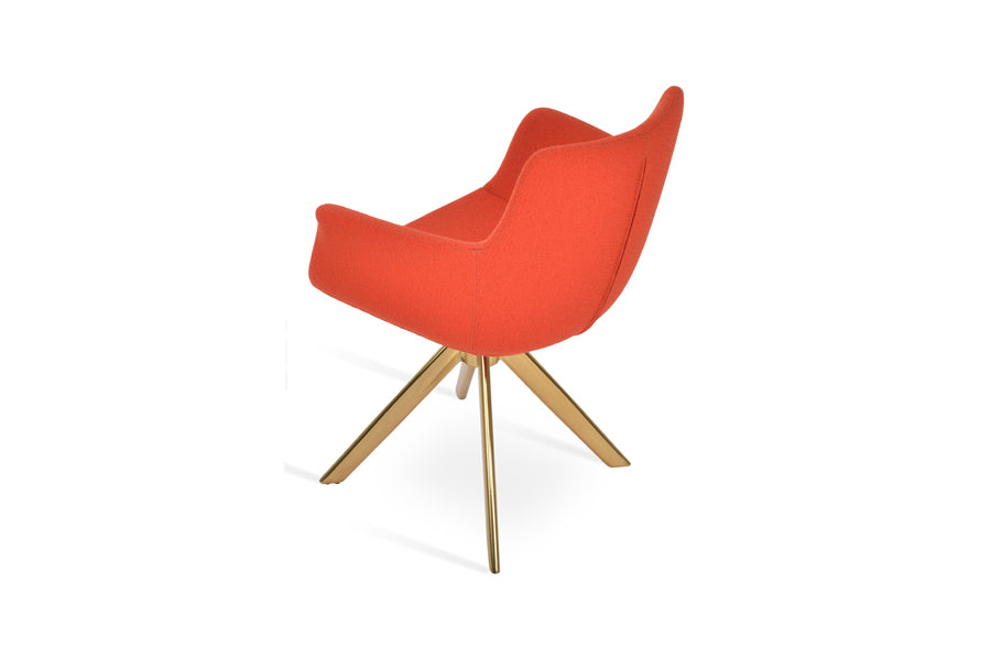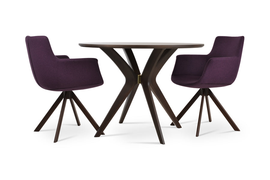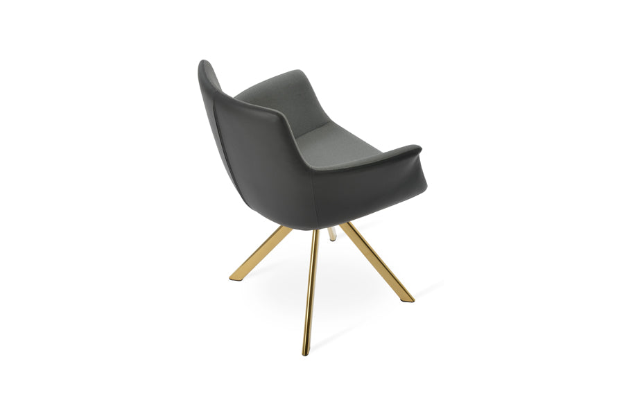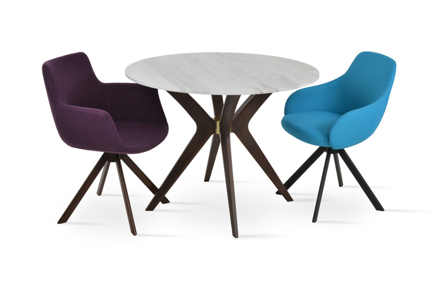 Bottega Sword is a unique dining chair with a comfortable upholstered seat and backrest on natural and walnut veneer steel base. Each leg is tipped with a plastic glide screwed into the foot. The seat has a steel structure with βSβ shape springs for extra flexibility and strength. This steel frame is molded by injecting polyurethane foam. Bottega seat is upholstered with a removable zipper enclosed leather, PPM, leatherette or wool fabric slip cover. This contemporary chair is suitable for both residential and commercial use. Bottega Sword is designed by Tayfur Ozkaynak.