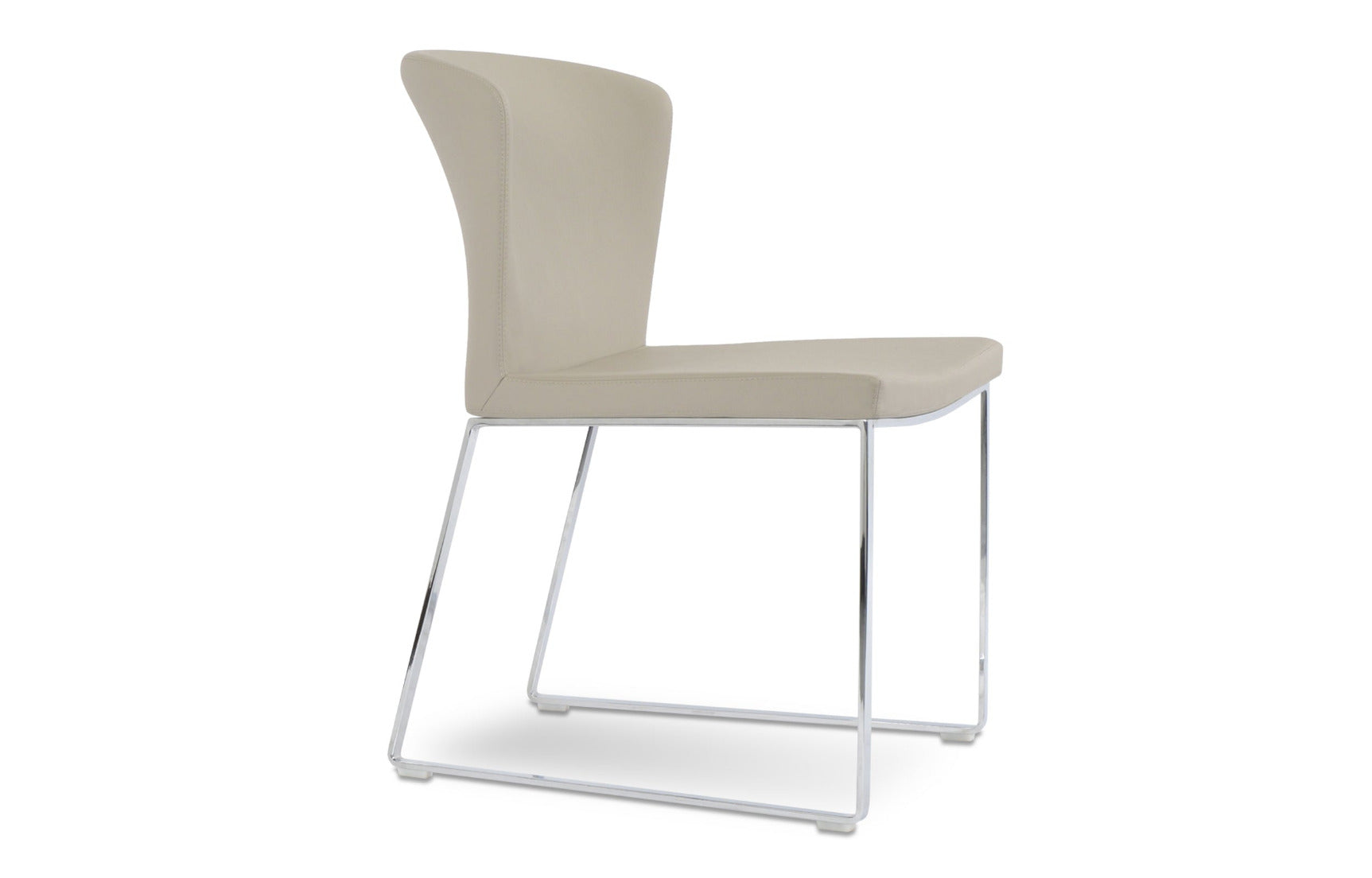 Capri Sled is a contemporary dining chair with a comfortable upholstered seat and backrest on a sled steel legs which are plastic tipped with plastic caps embedded inside the steel base. The seat has a steel structure with “S” shape springs for extra flexibility and strength. This steel frame is molded by injecting polyurethane foam. Capri Sled is suitable for both residential and commercial use. Its sturdiness sled base that moves very smoothly on carpets has the chair especially preferred for lounge, restaurants, and other public areas. Capri Sled is designed by Tayfur Ozkaynak.