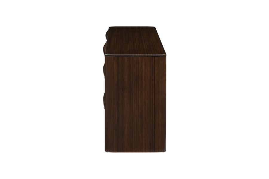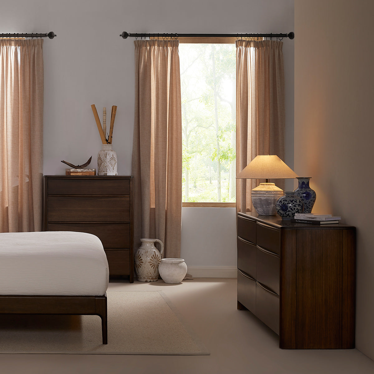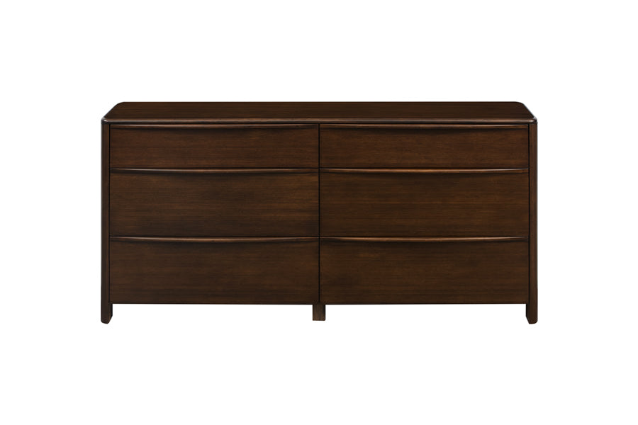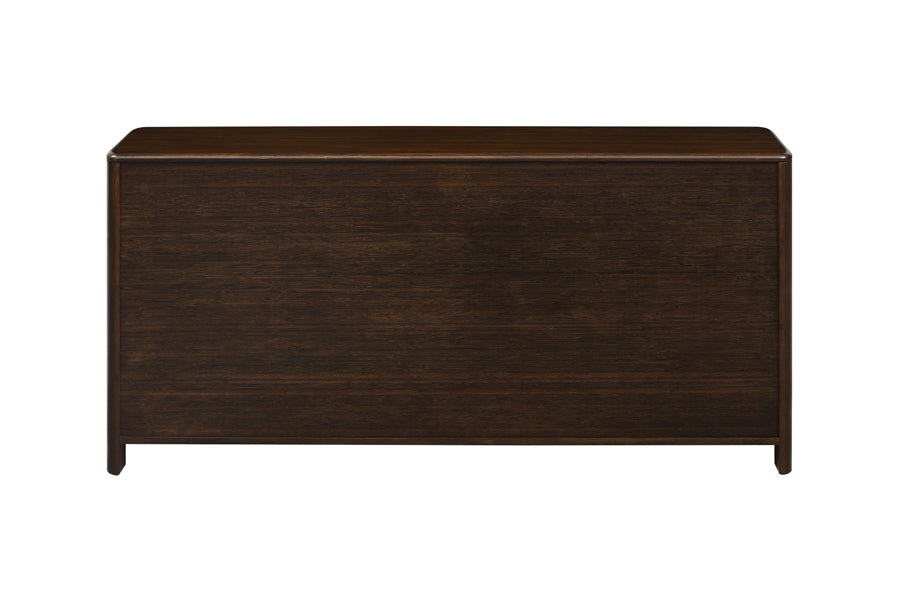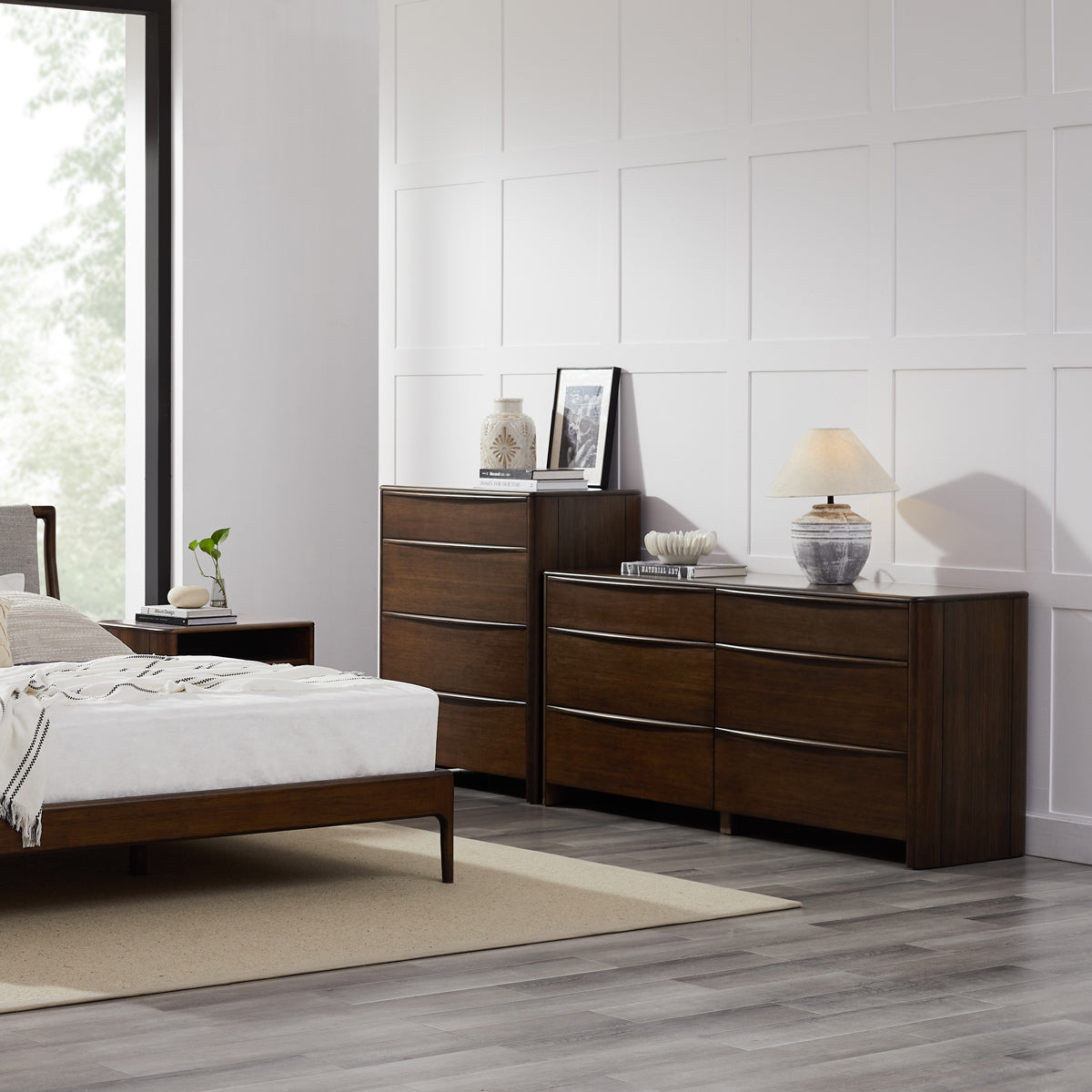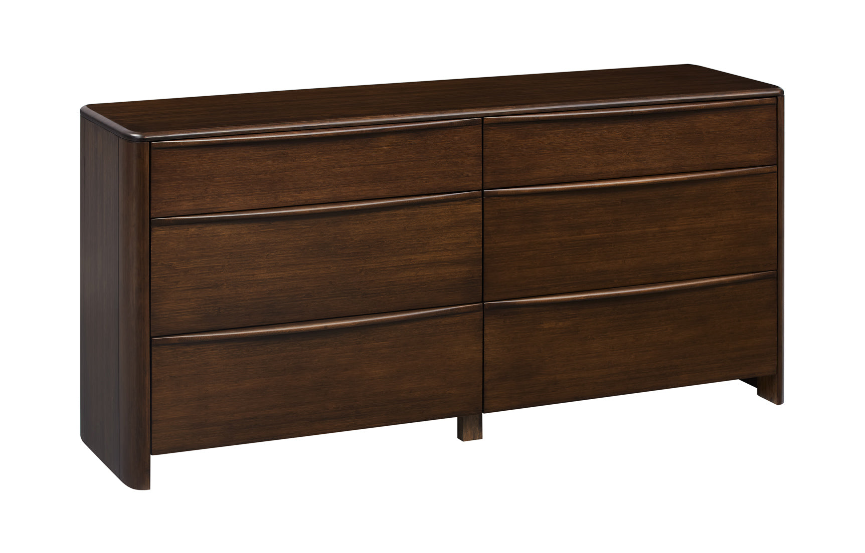 The Catalina dresser combines softly modern design with an eye-catching solid bamboo frame, featuring rounded edges that give it a gentle, contemporary look. With spacious drawers perfect for storing sweaters and denim, the dresser is accented by elongated curved drawer pulls that create a multi-dimensional effect. The six solid bamboo drawers are finished inside and out, constructed using English dovetail joinery, and equipped with soft-closing under-mount drawer glides for smooth, quiet operation. Sustainably crafted and finished in rich Black Walnut, the dresser's natural bamboo grain and color variations enrich its beauty, making each piece unique. These slight differences are a hallmark of high-quality craftsmanship, demonstrating that each piece is crafted from solid bamboo, which is considered a benchmark of quality. Bamboo is a rapidly renewable resource, your purchase of Catalina contributes to the preservation of forests and ecosystems worldwide, making the Catalina dresser an environmentally friendly choice for your home.