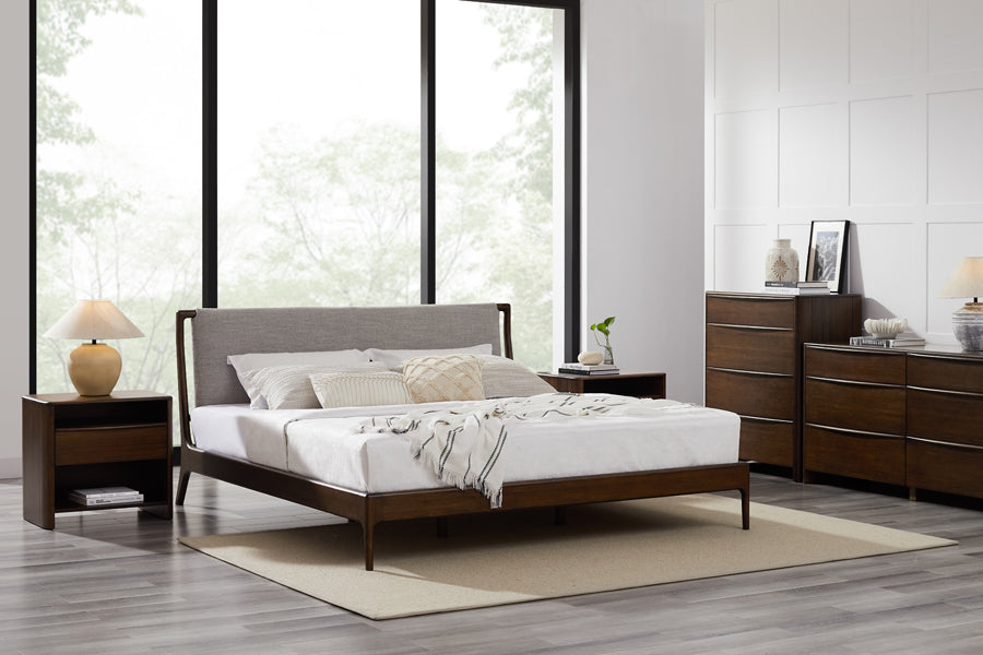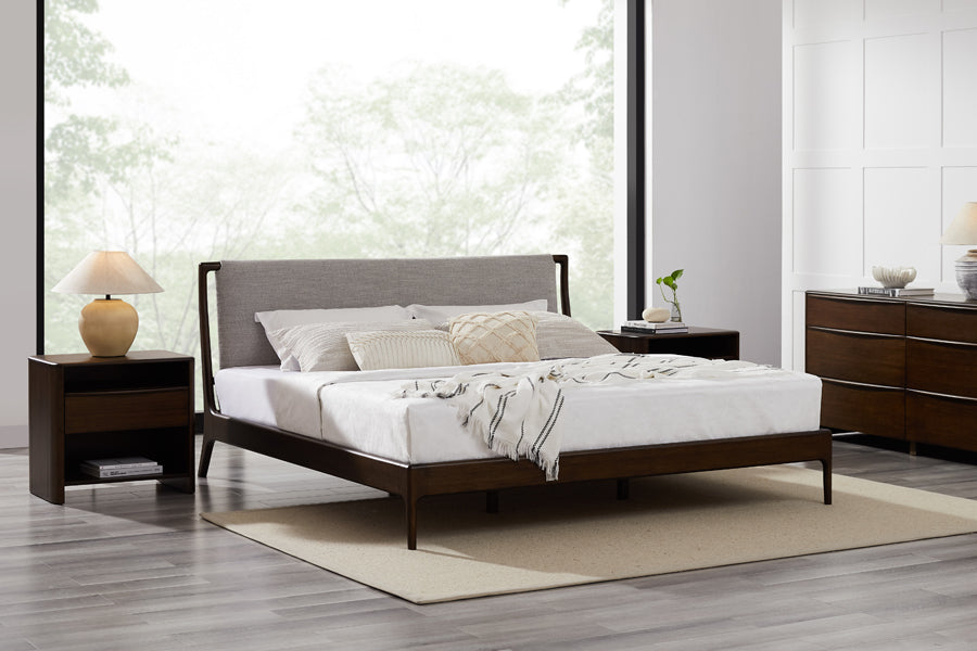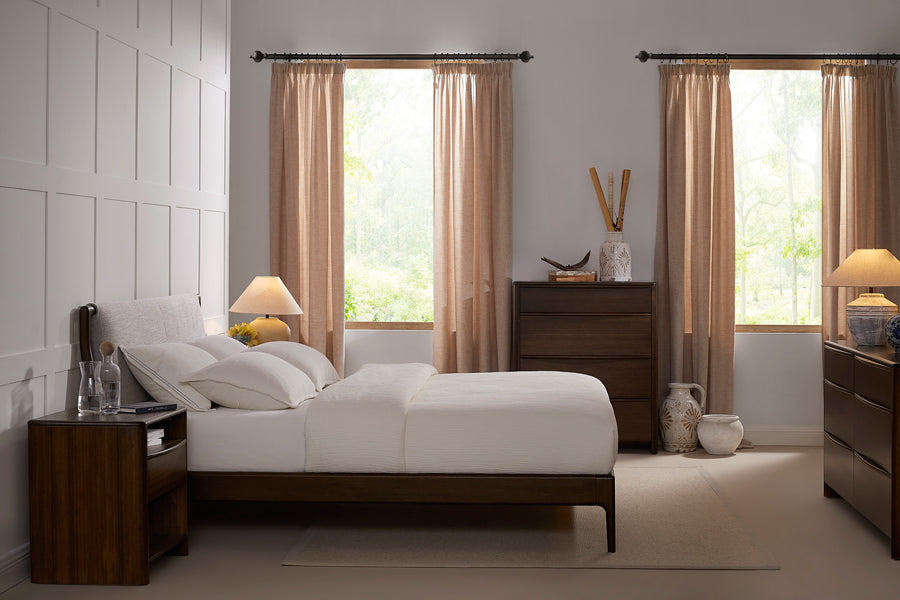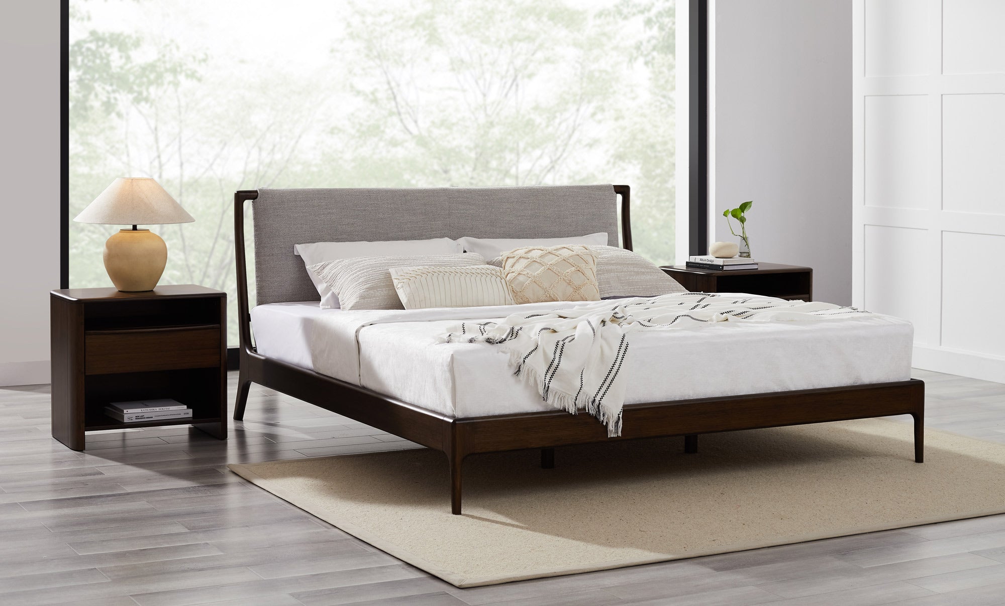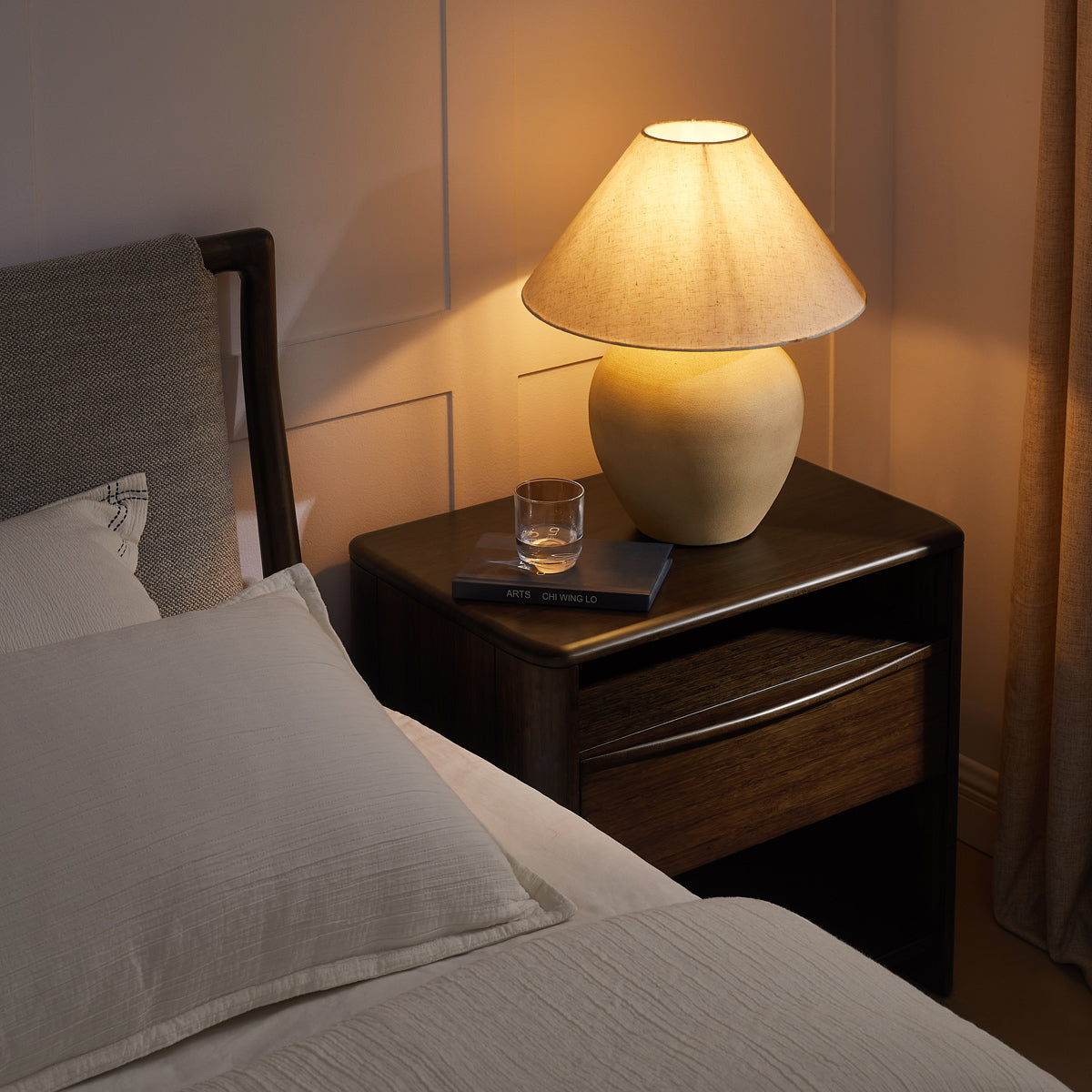 The Catalina nightstand features a softly modern design with an eye-catching solid bamboo frame and rounded edges, creating a gentle, contemporary look. The elongated, curved drawer pulls add a multi-dimensional effect to the piece. It offers two open shelves and one generously sized drawer, crafted from solid bamboo and finished inside and out. The drawer box is constructed using English dovetail joinery and equipped with soft-closing under-mount drawer glides for smooth, quiet operation. Sustainably crafted and finished in a rich Black Walnut, each piece of the Catalina nightstand is unique, with variations in bamboo grain and color that enrich the natural beauty of the furniture. These slight differences are a testament to the high-quality craftsmanship that makes solid bamboo furniture a benchmark of excellence. Bamboo is a rapidly renewable resource, your purchase of Catalina contributes to the preservation of forests and ecosystems worldwide, making the Catalina nightstand an environmentally friendly choice for your home.