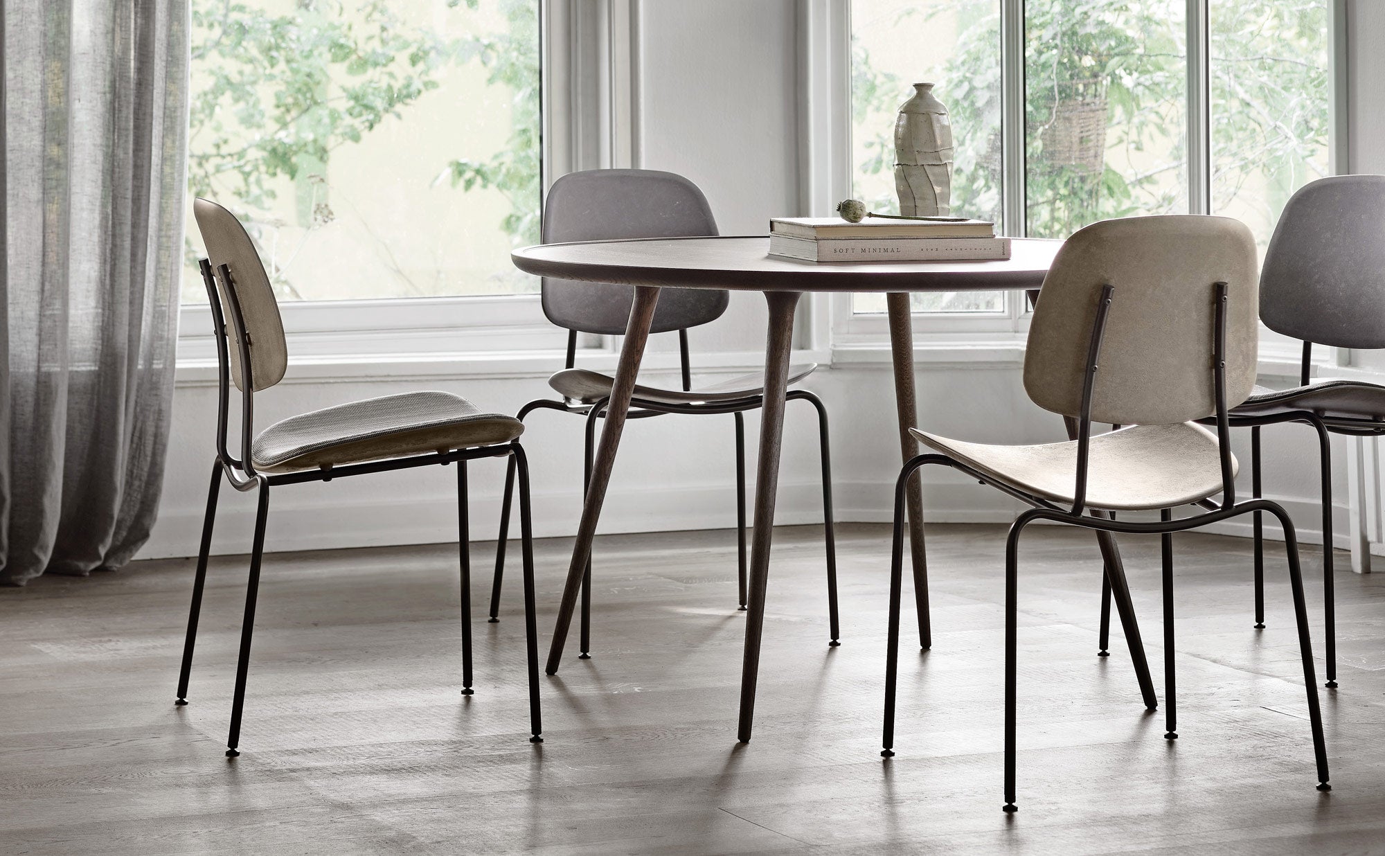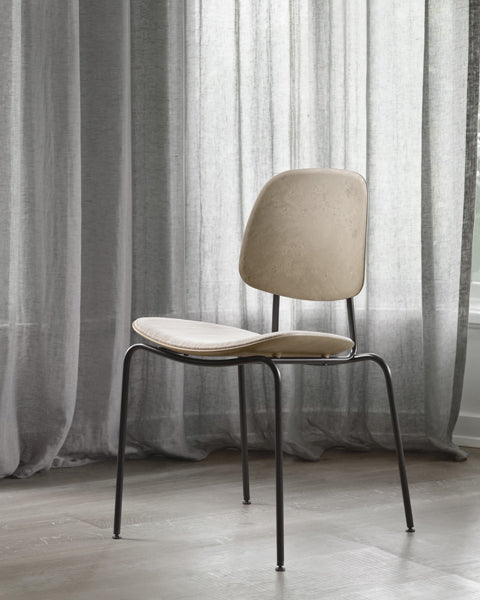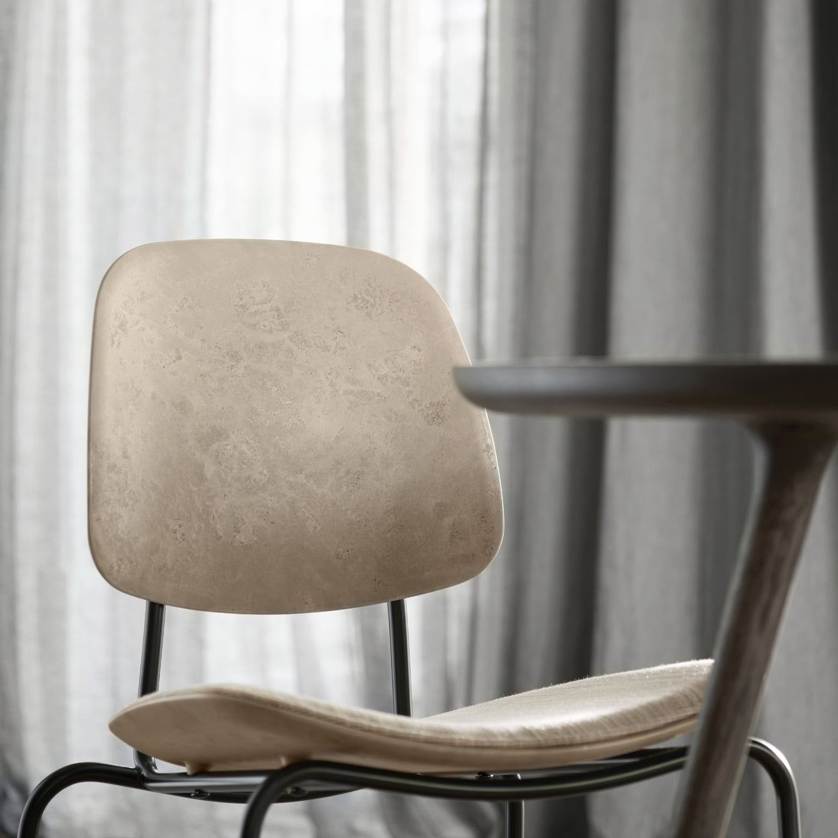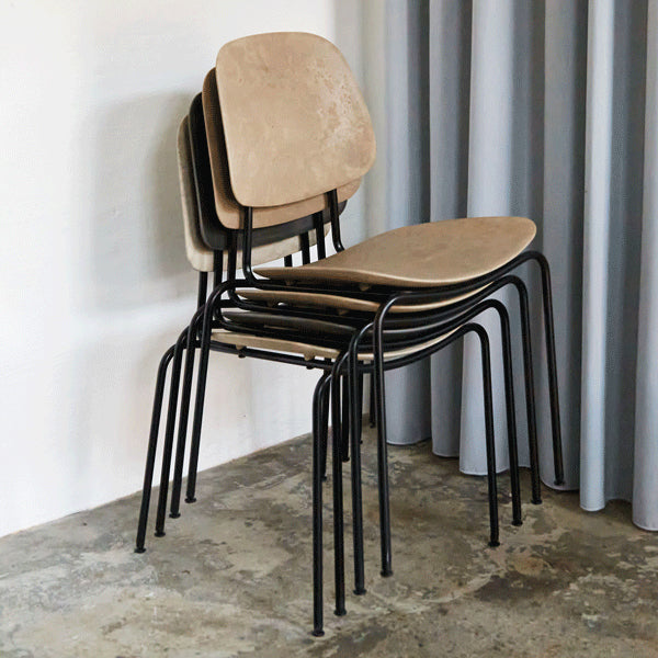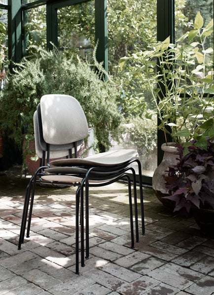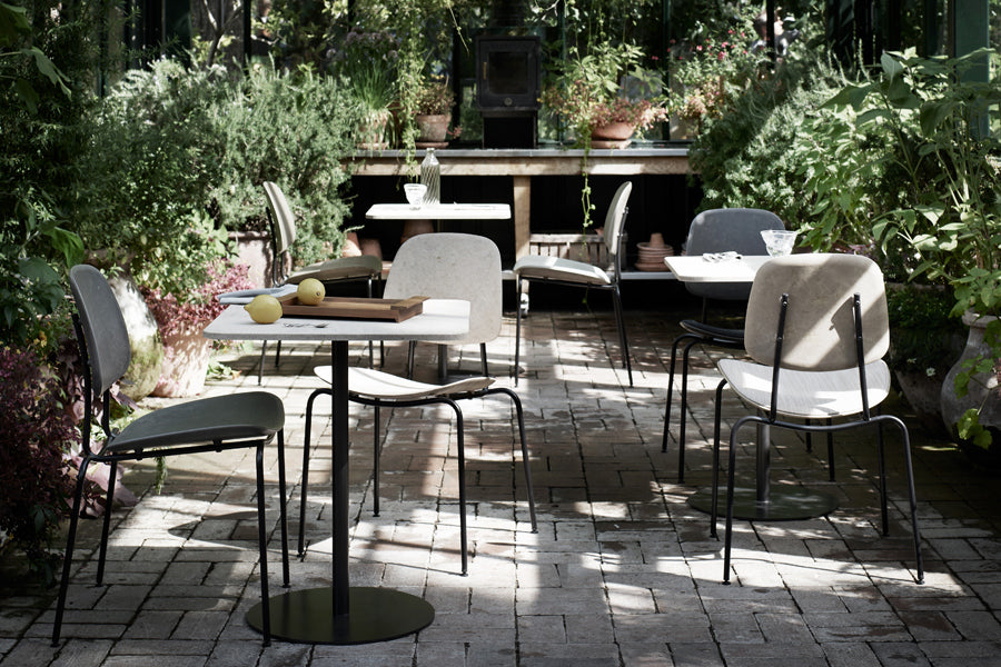 The Compound Dining Chair designed by OEO Studio is made with a frame of 20% recycled steel and a seat and back in Matek®. The minimalist design and superb comfort make The Compound Chair suitable for both private and public use. It is available in several Matek® blends, with and without upholstery. The Compound Dining Chair is stackable with up to eight chairs without upholstery and four chairs with upholstery.