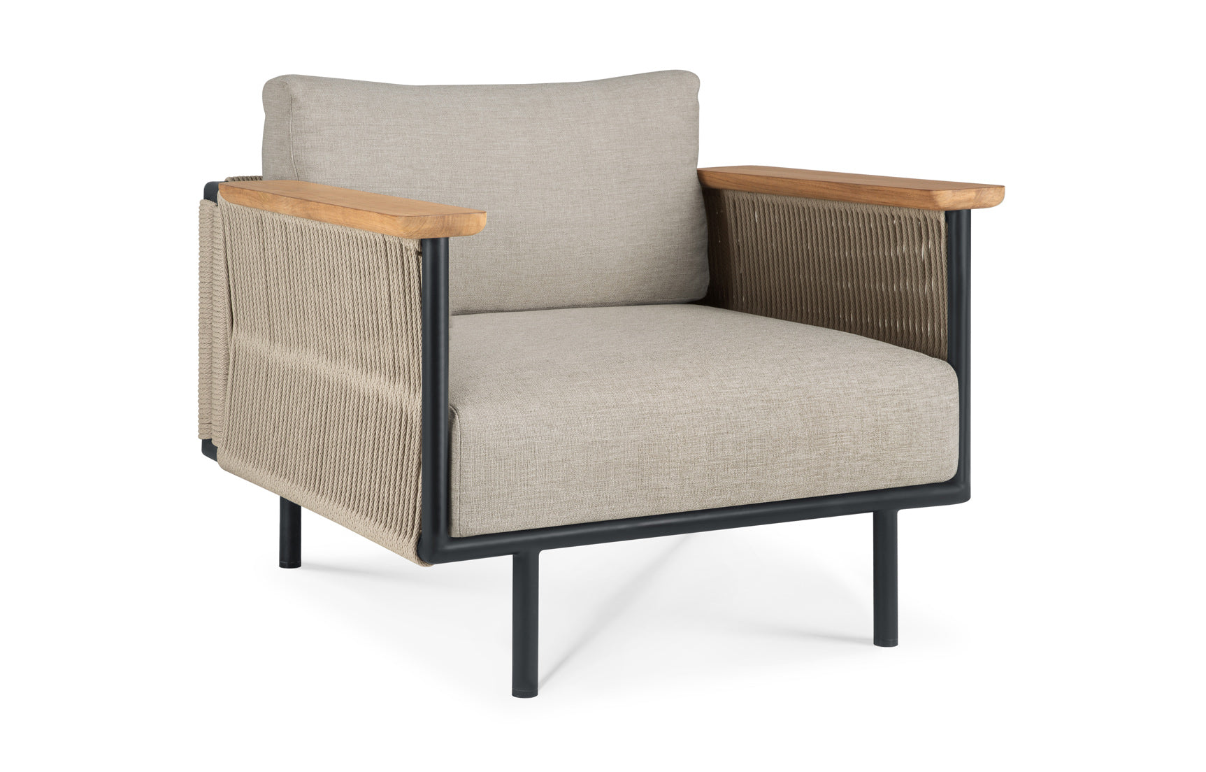 Inspired by the French word 'Corbeille,' meaning basket, the Corbey collection mirrors the charming beach hives found within the Wadden Islands, especially on the coastline of the picturesque island of Sylt. The Corbey lounge chair features plush, inviting cushions and intricately woven cord details, creating a perfect blend of style and relaxation for your outdoor haven.