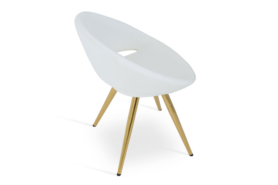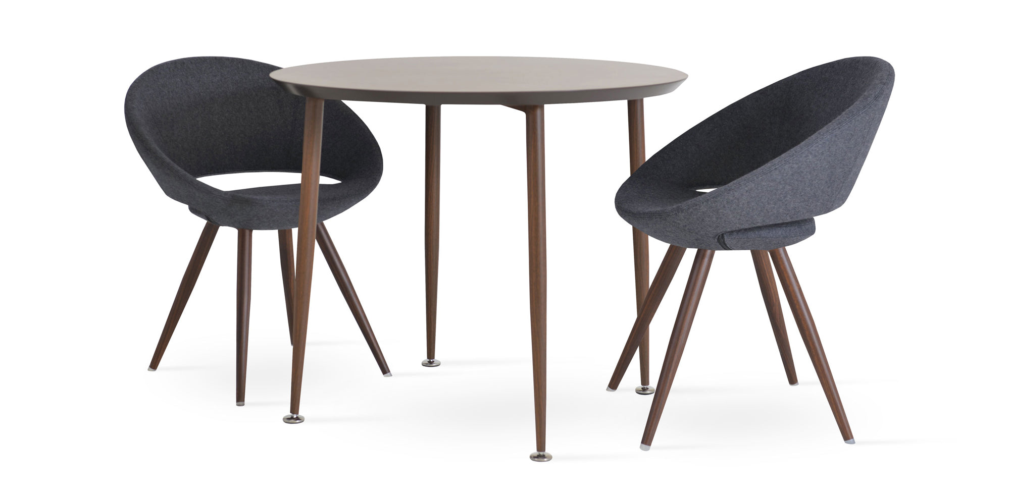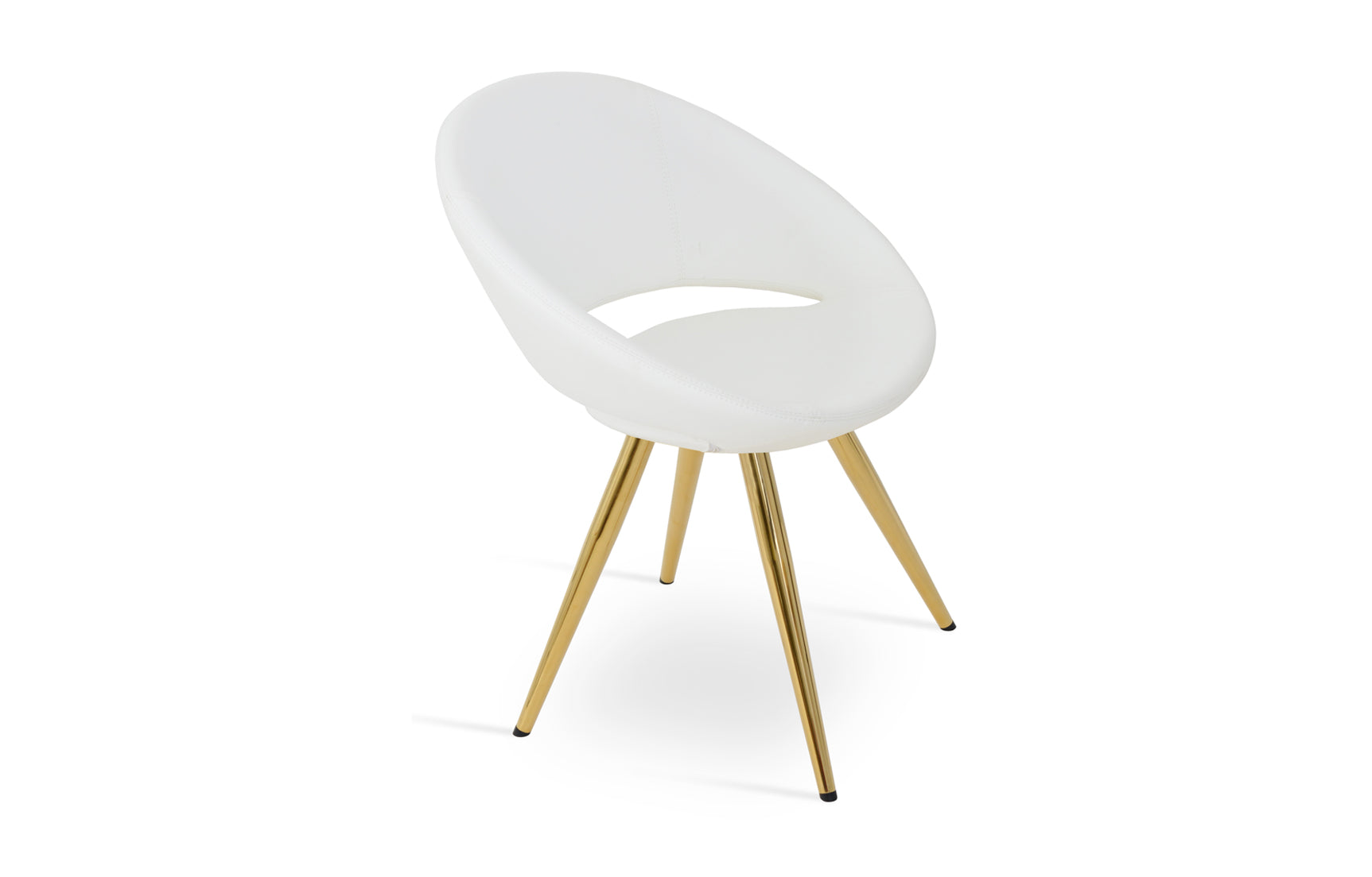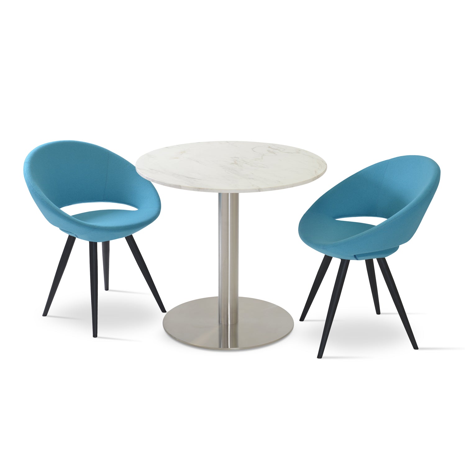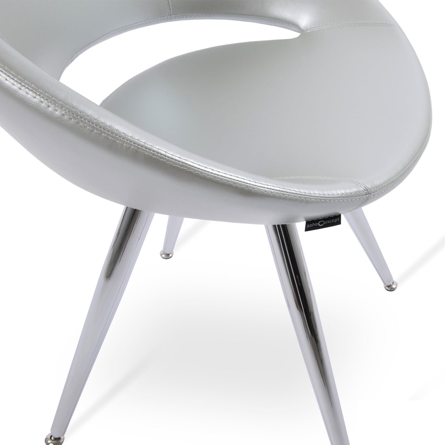 Crescent Star is a unique dining chair with a comfortable upholstered seat and backrest on a black coated steel base. Each leg is tipped with a plastic glide screwed into the foot. The seat has a steel structure with βSβ shape springs for extra flexibility and strength. This steel frame is molded by injecting polyurethane foam. Crescent seat is upholstered with a removable zipper enclosed leather, PPM, leatherette or wool fabric slip cover. This contemporary chair is suitable for both residential and commercial use. Crescent Star is designed by Tayfur Ozkaynak.