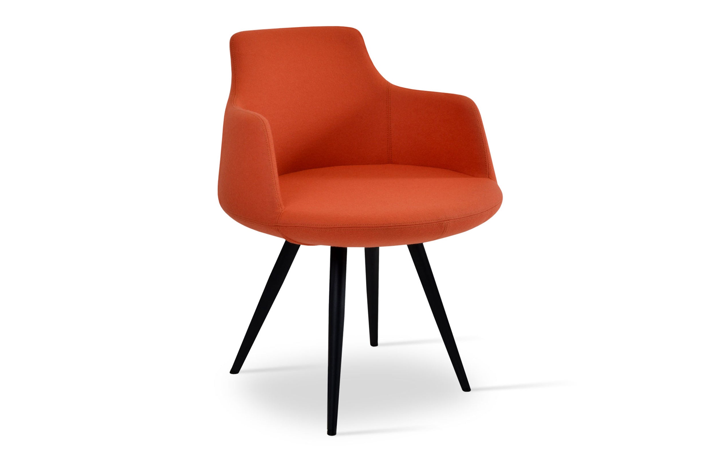 Dervish Star Chair is a modern dining chair with a comfortable upholstered seat and backrest on black powder, natural veneer steel or stainless steel base options. The seat has a steel structure with “S” shape springs for extra flexibility and strength. This steel frame is molded by injecting polyurethane foam. Dervish seat is upholstered with a removable zipper slip cover that can be changed with professional help. Camira Fabrics are 5 year guaranteed from the date of invoice against wear through (the complete deterioration of the fabric's structure in a particular area) and loss of colorfastness (the excessive loss of color due to exposure to light). Dervish Star is suitable for both residential and commercial use. Dervish Star Chair is designed by Tayfur Ozkaynak.