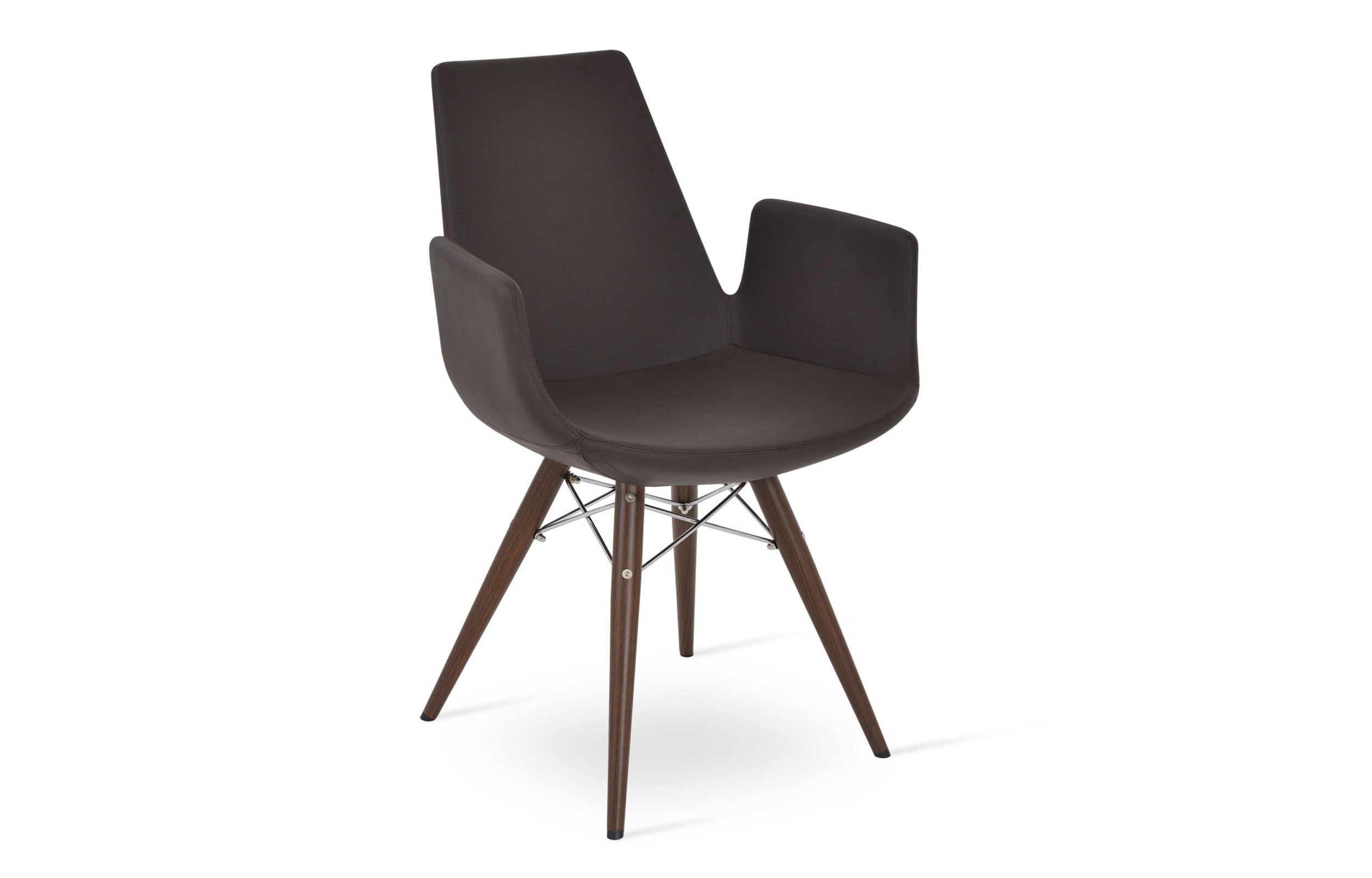 Eiffel Arm MW is a contemporary dining chair with a comfortable upholstered seat and backrest on a natural and walnut veneer steel base. Each leg is tipped with plastic glides. The seat has a steel structure with “S” shape springs for extra flexibility and strength. This steel frame is molded by injecting polyurethane foam. Eiffel MW Arm may be upholstered with variety of other colors as a special order with a minimum of quantity required. This chair is suitable for both residential and commercial use. Eiffel Arm MW is designed by Tayfur Ozkaynak.