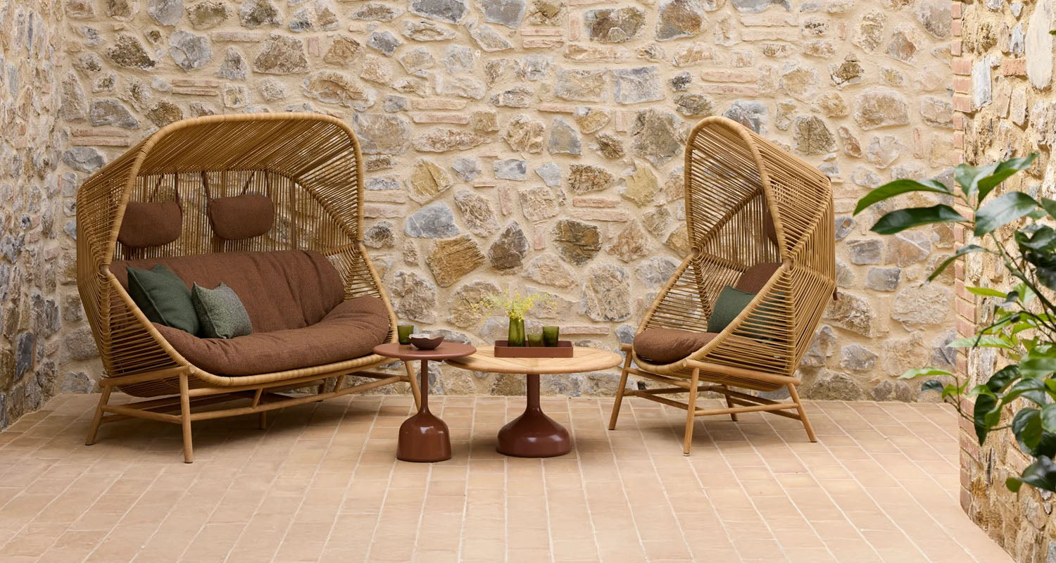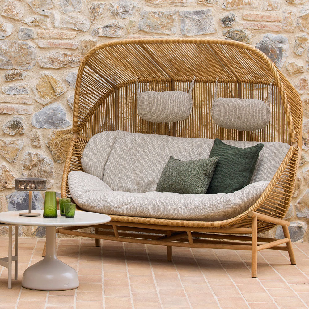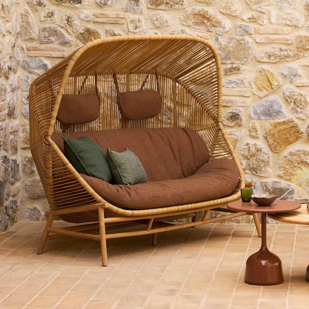The Hive 2-seater sofa exudes a sculptural elegance that makes it an eye-catching centerpiece in any outdoor space, whether as a standalone piece or part of a larger setup. The sofa, designed by Foersom & Hiort-Lorenzen MDD, takes inspiration from the natural shape of a beehive. Its organic form invites you to unwind and enjoy moments of reflection and relaxation in a unique, embracing design. The Hive sofa is handwoven in the weather-resistant Cane-line Weaveยฎ in a delicate and artistic wicker pattern, which brings both style and durability to your outdoor space. It can be placed hanging in a rope for a playful, floating effect or placed on a solid base in premium teak, allowing for versatile placement. The generous cushions, featuring the QuickDry & Airflow system, ensure rapid drying after a downpour, providing long-lasting comfort in any weather.