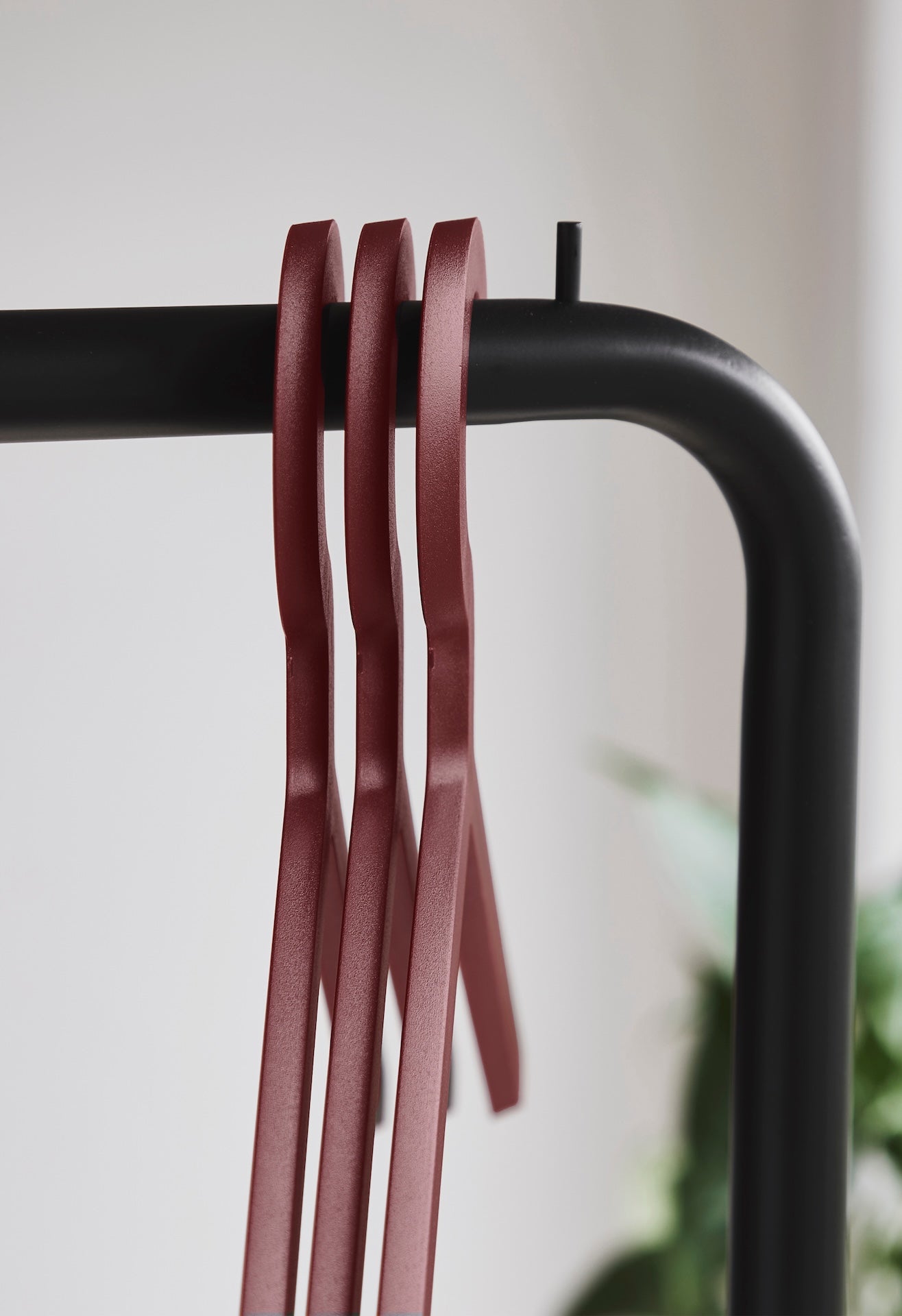 The Illusion hanger is designed to create an illusion formed by its oblique angles. Challenging your eye. The shape will vary significantly depending on the angle you look at it. Slowly, the Illusion will swing into a diagonal order, which creates an elegant and harmonious group of hangers. Illusion hangers are available in black and white and come in sets of three.