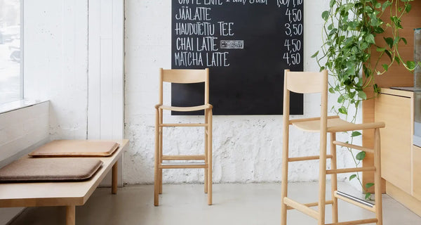 The Linea Perch bar stool got its inspiration from a very round, solid wooden doorknob in Helsinki. The young designers participated in the Finnish Design Shop Design Competition and won the first prize with their light stool. The Linea Perch High was created after its little brother, to be used around bar height tables.