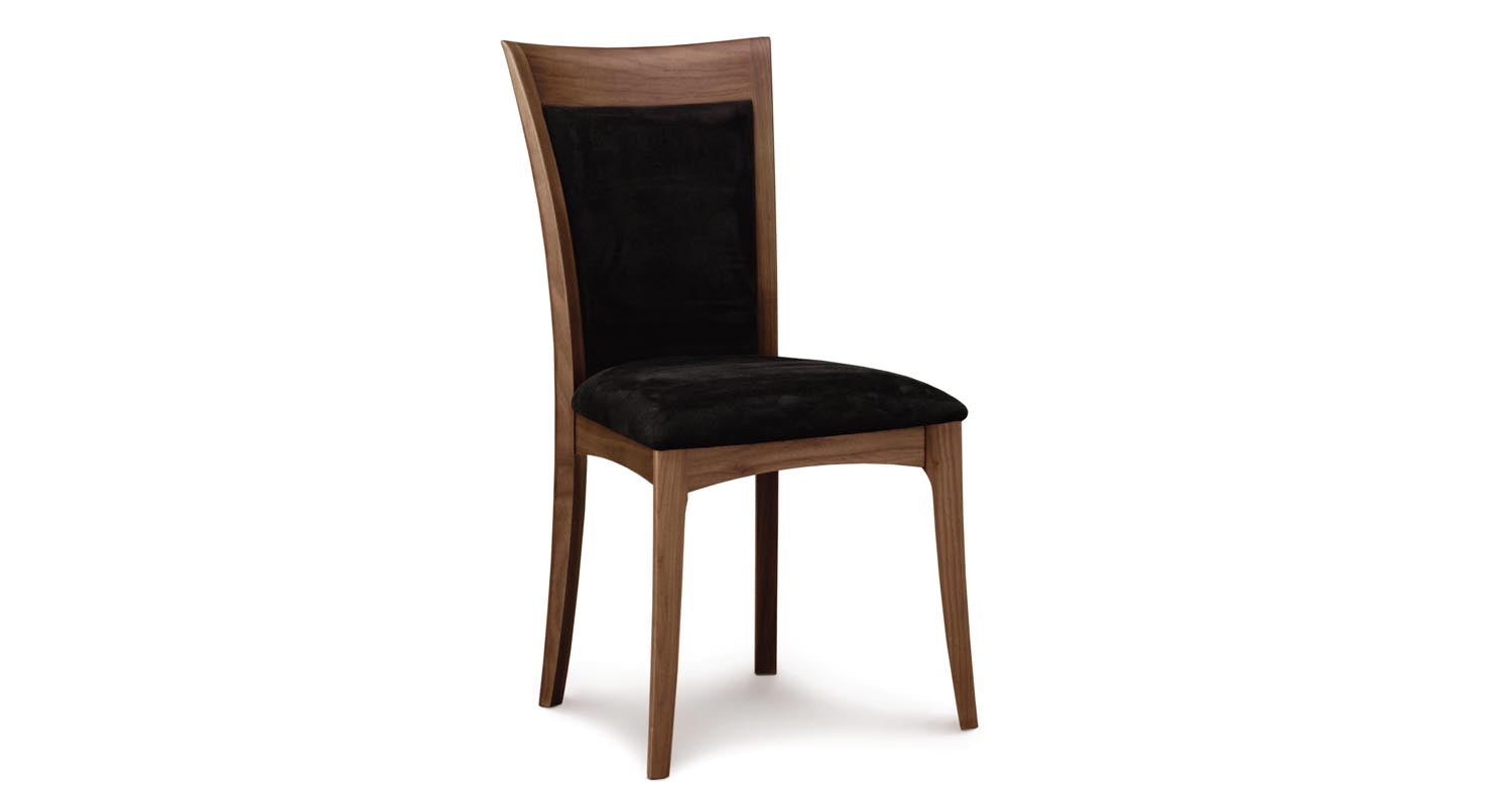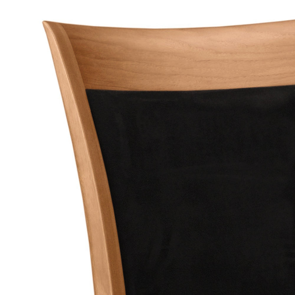 Crafted in solid cherry the Morgan Side Chair is available in arange of microsuede, fabric, UltraSuede®, UltraLeather® Original by UltraFabrics®, Elements Collection by Sunbrella or leather colors as well as COM (customer’s own material). The Morgan Armchair is shown here in ONYX MICROSUEDE (89127) and made to Order in several finishes. The Morgan Armchair is also crafted in solid American black walnut with natural finish. Walnut dining items are finished with low sheen (10 sheen) top coat.
