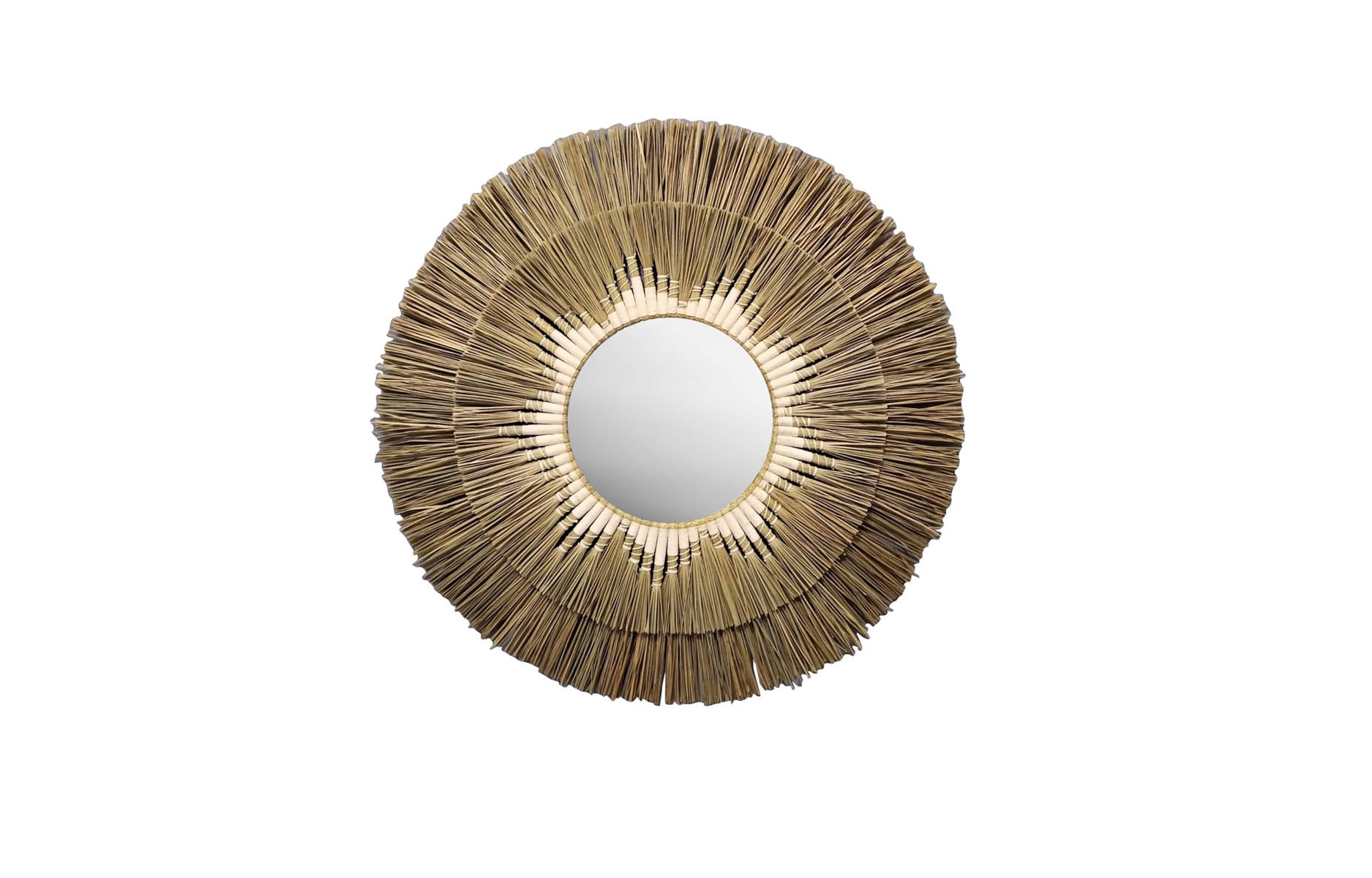 Intricately handcrafted with natural mendong for a contemporary appearance, this circle mirror is a perfect piece to add a modern ornamental touch to any interior.